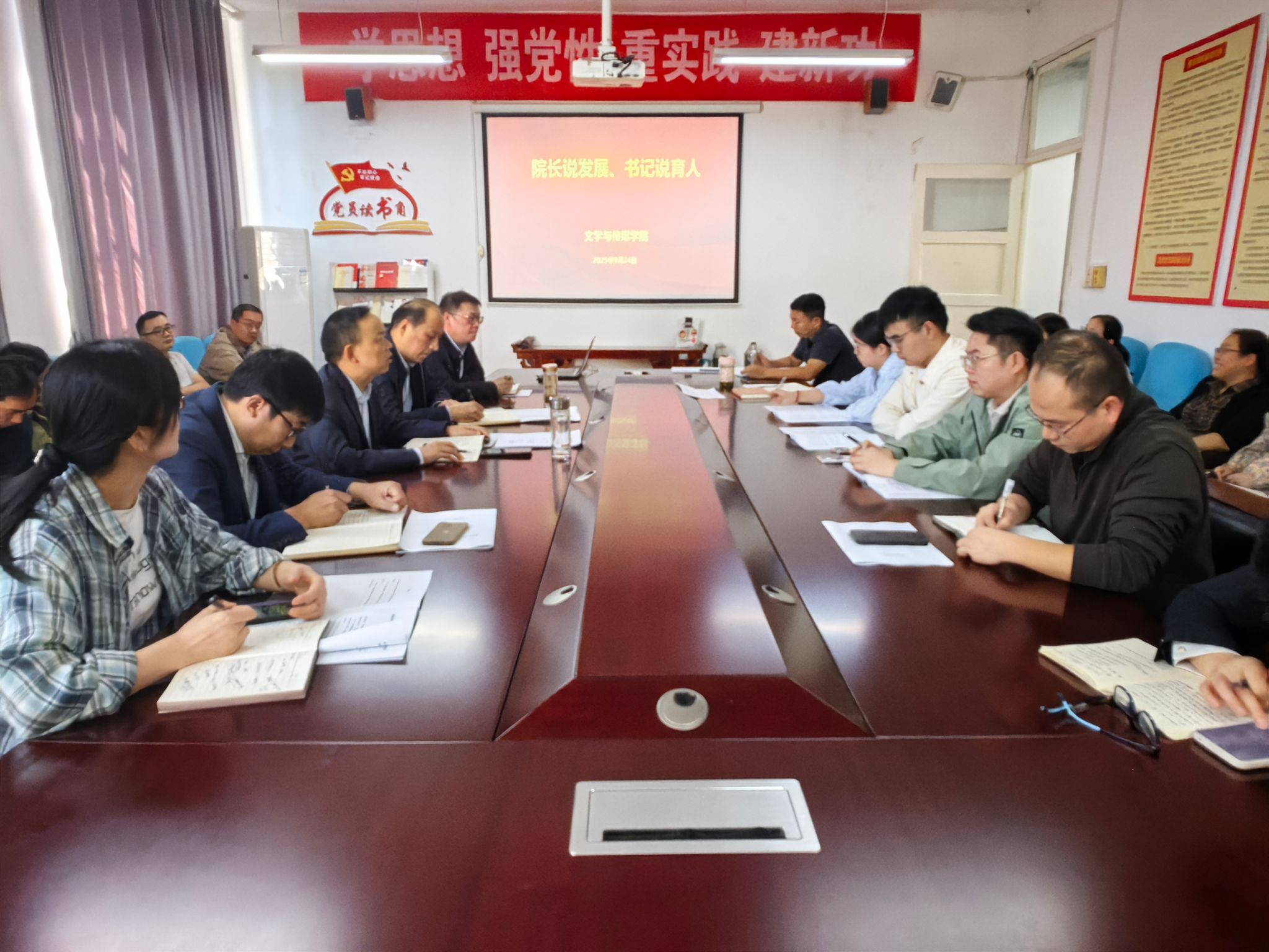 9月24日下午,日本少妇AA一级特黄大片在2307会议室开展“院长说发展、书记说育人”专题活动。院长杨运庚围绕学院教育教学现状和未来发展,党总支副书记(主持工作)任森龙围绕学院育人工作机制和成效做了专题报告,学院全体教职工参加了报告活动。