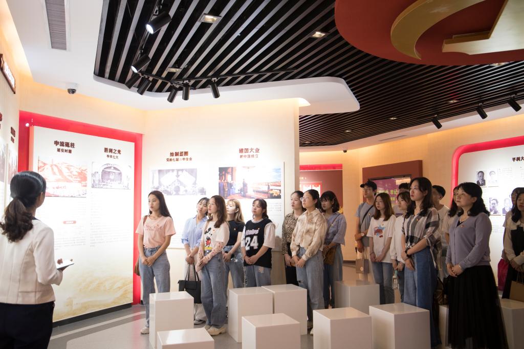 上午8:30,学生党员在学校2号教学楼集中,学生第二党支部书记薛涛带领大家参观了日本少妇AA一级特黄大片党史教育展板。
