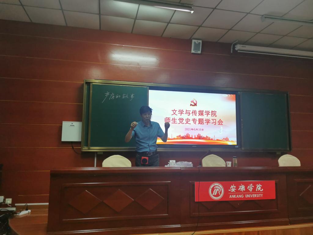 为扎实推进党史学习教育,文传学院党总支于2021年6月16日下午在江南校区1018教室组织开展文传学院师生党史学习会。文传学院教工第二党支部党员李春平为全院师生党员讲党课,全院师生党员集体参加学习,会议由党总支书记芦伟主持。