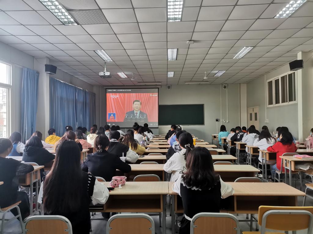 10月16日上午10时,中国共产党第二十次全国代表大会在北京人民大会堂隆重开幕,习近平总书记代表第十九届中央委员会向大会作报告。文传学院学生第一、第二党支部根据疫情防控要求,组织全体学生党员集中观看党的二十大开幕盛况。
