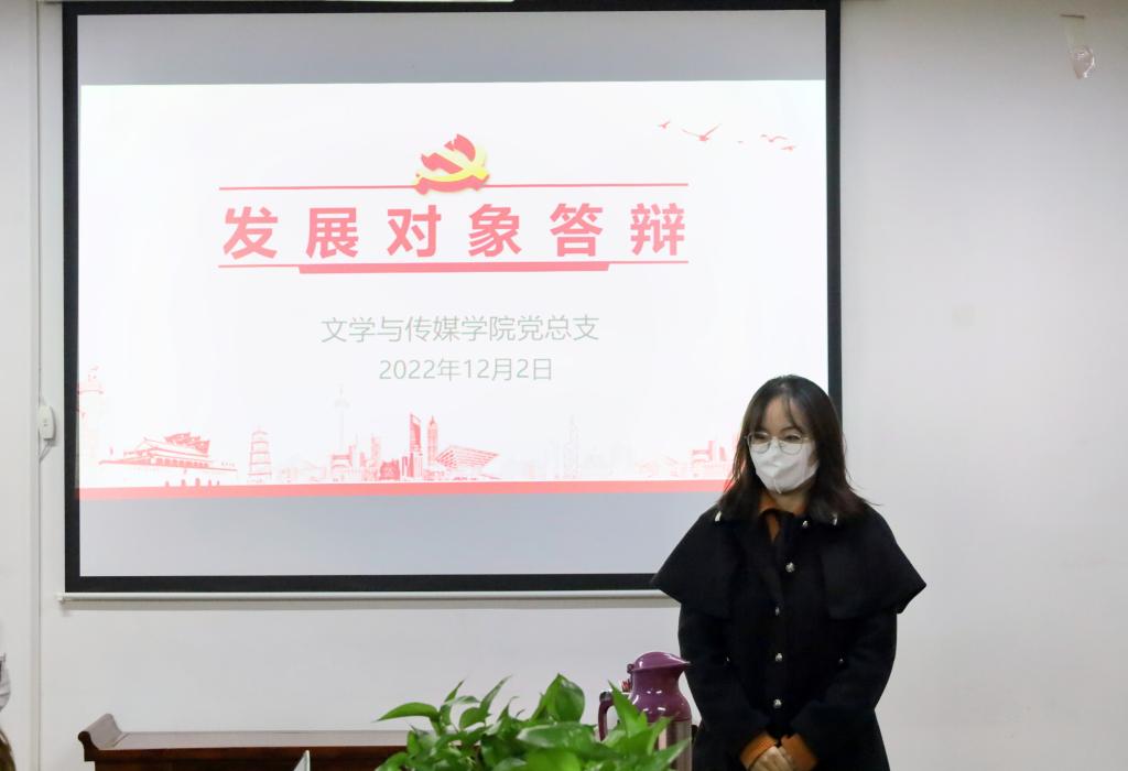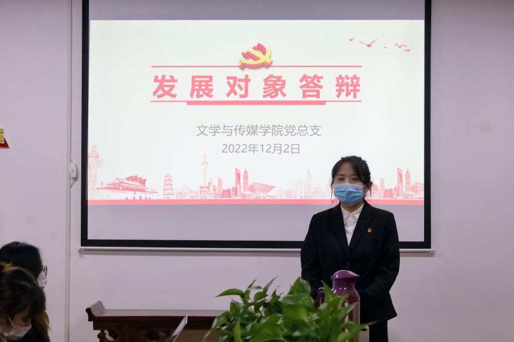 为深入学习宣传贯彻党的二十大精神,规范党员发展工作,引导入党积极分子树立共产主义远大理想,同时严格把控党员发展质量,考察发展对象的党性修养,吸纳具备较高政治思想意识和党性觉悟青年学生加入党组织,日本少妇AA一级特黄大片学生党支部于2022年12月2日晚19:00在2307会议室举行2022年下半年发展对象答辩会。受疫情影响,此次答辩会采用线上与线下相结合方式进行。日本少妇AA一级特黄大片党总支副书记杨海蓉、团总支书记彭潇、学生党支部书记李欣逸、薛涛出席了本次答辩会。