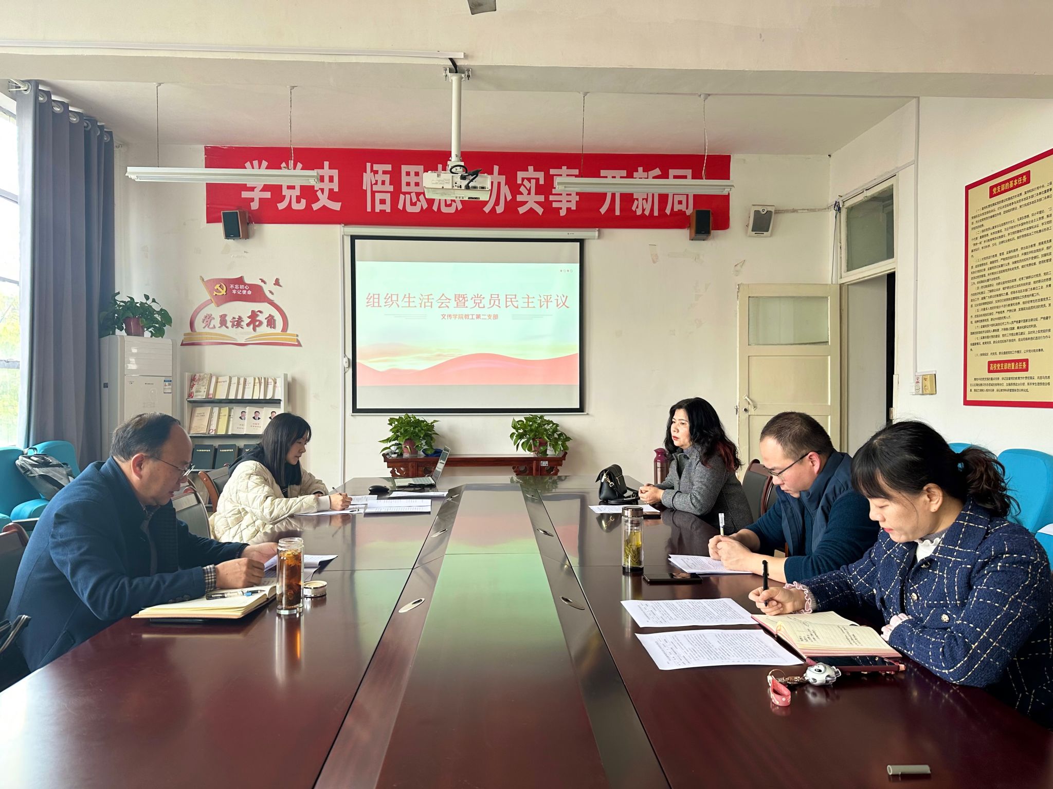 3月17日,文传学院教工第二党支部在2307会议室召开了2022年度组织生活会暨民主评议党员大会。会议由支部书记邸玲主持,学校党委副书记杨行玉以普通党员身份参加了会议。
