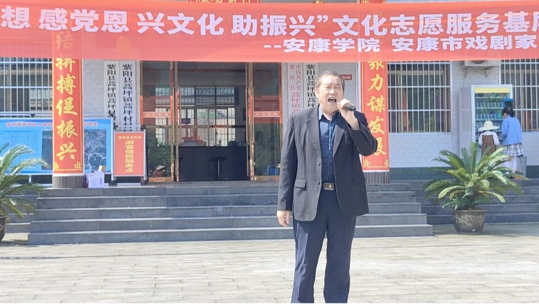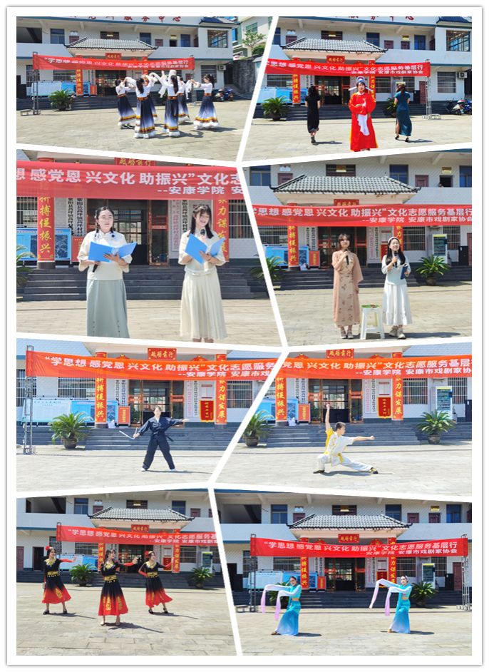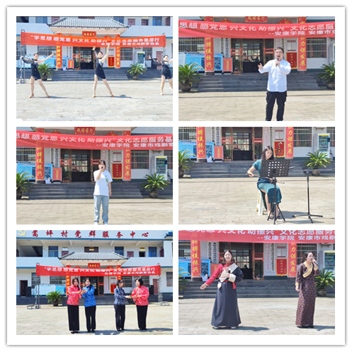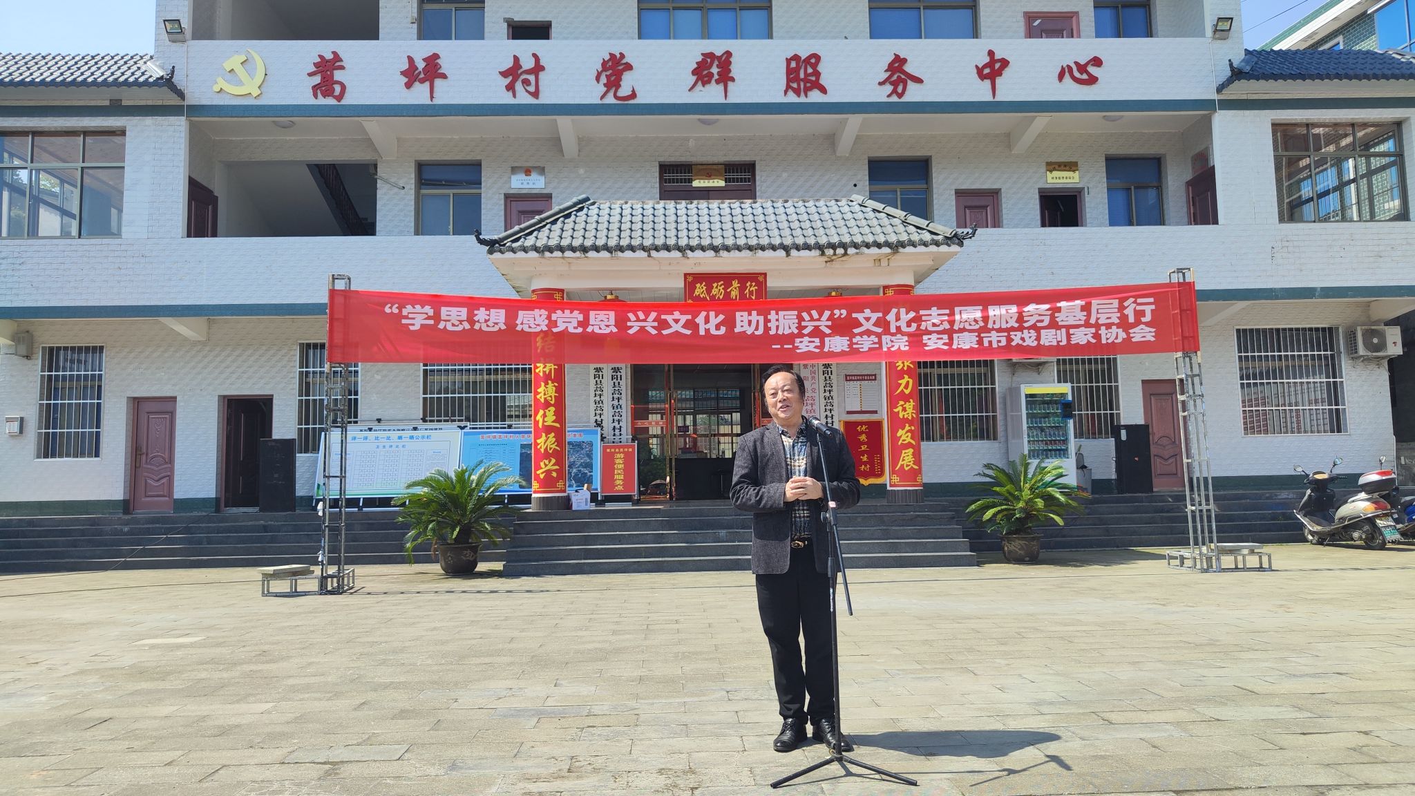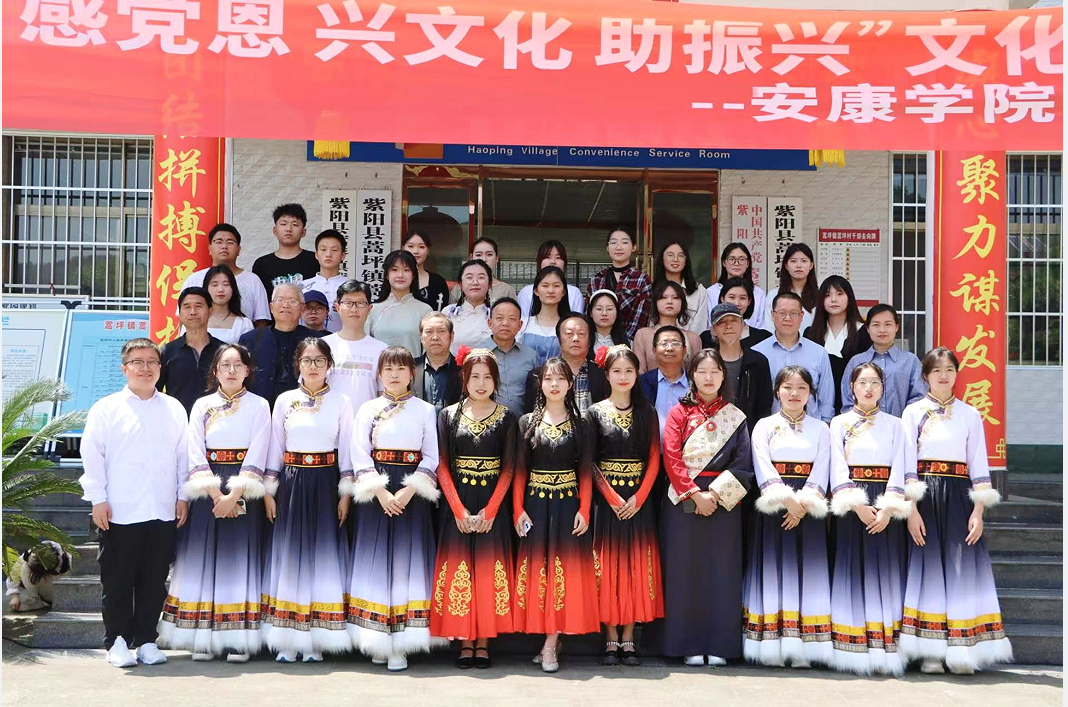 为了积极学习贯彻习近平新时代中国特色社会主义思想和党的二十大精神,推进学院主题教育走深走实,发挥学院“中华经典诵写讲基地”职能,进一步弘扬中华民族优秀传统文化,引导教师党员深入农村“传家风 诵经典 兴文化”,助力乡村文化振兴。5月13日,文传学院教工第一、第二党支部教师党员和学生文艺演出团队赴紫阳县蒿坪镇蒿坪村开展“学思想 感党恩 兴文化 助振兴”文化志愿服务基层行活动。文传学院师生党员、影视戏剧社学生、蒿坪镇政府和蒿坪村领导以及安康市、紫阳县戏剧协会主要负责人等参加了本次活动。