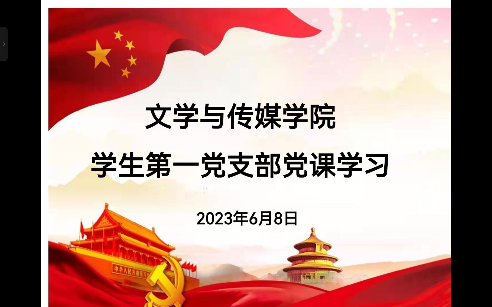 文传学院学生第一党支部于6月8日下午在线上召开新一期支部书记讲党课活动。活动主题为《深刻认识党的二十大关于党的建设的重要论述和部署》,党课由文传学院学生第一党支部书记李欣逸主讲,支部全体党员参加学习。