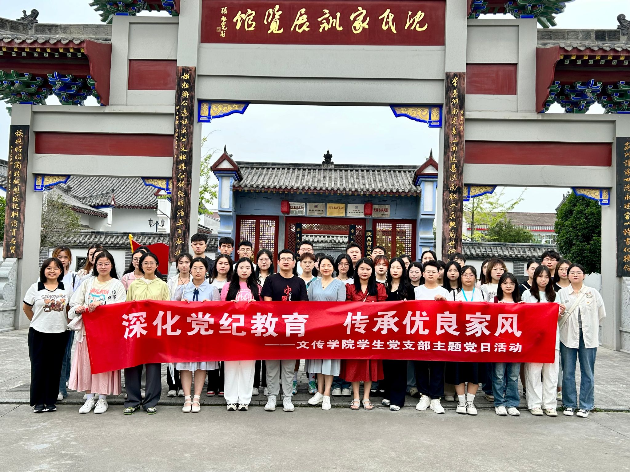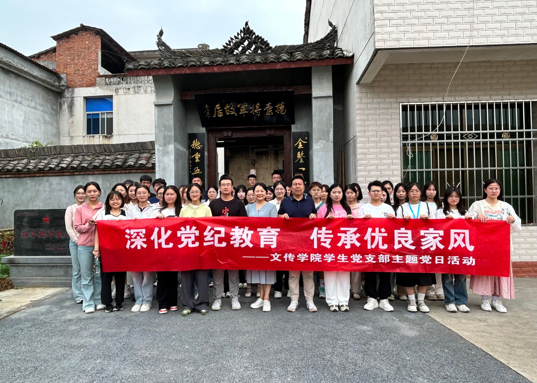 为深化党纪学习教育成效,提升党员党性修养,6月18日上午,文传学院学生第一、第二党支部组织学生党员前往沈氏家训展览馆和杨弃将军故居开展“深化党纪教育、传承优良家风”主题党日活动。文传学院党总支副书记杨海蓉、学生第一党支部书记许明和学生第二党支部书记薛涛参加了此次主题党日活动。