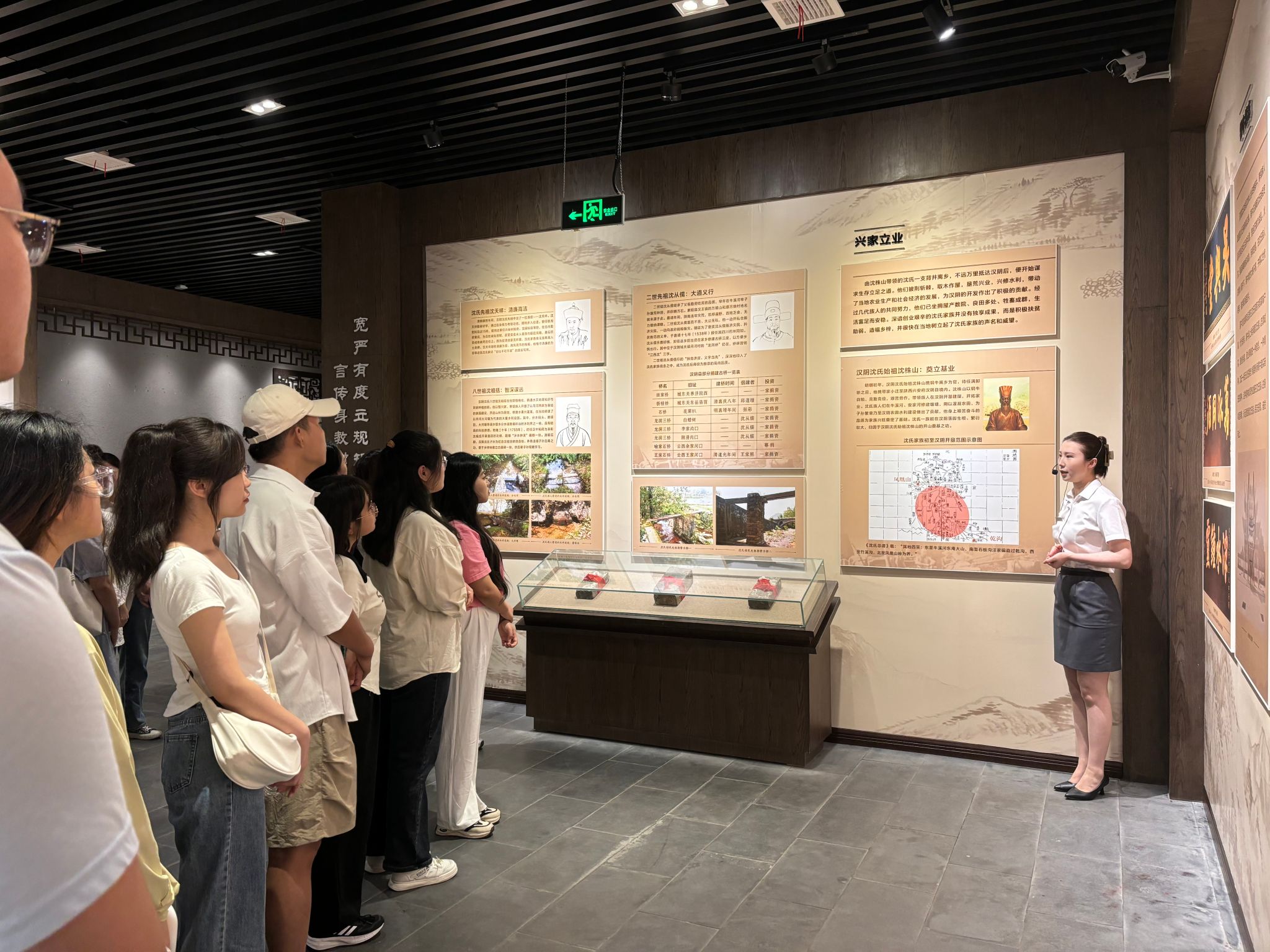 经过近一小时的车程,顺利抵达汉阴县沈氏家训展览馆。在展览馆讲解员的带领下,大家参观学习了沈氏家训展览馆。通过讲解,大家了解了汉阴沈氏的起源、沈氏家训的产生、发展及完善过程,以及家训所蕴含的廉洁文化、家国文化和传统文化的深刻内涵,师生们在研读和交流中深受触动,感受到良好家风对家族传承和社会教育的重大意义。