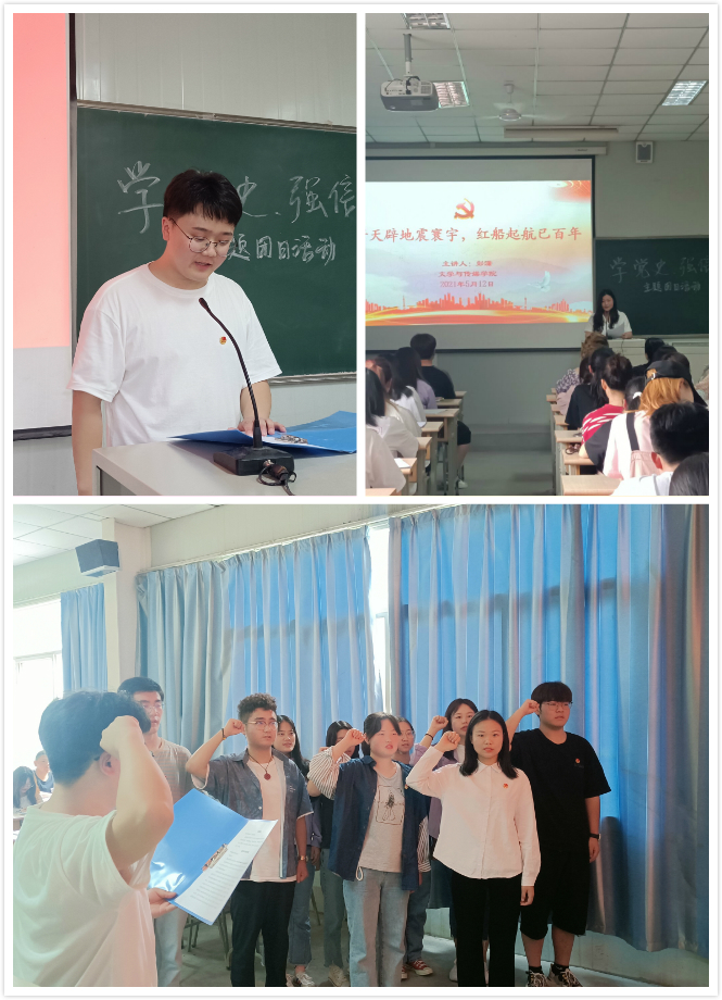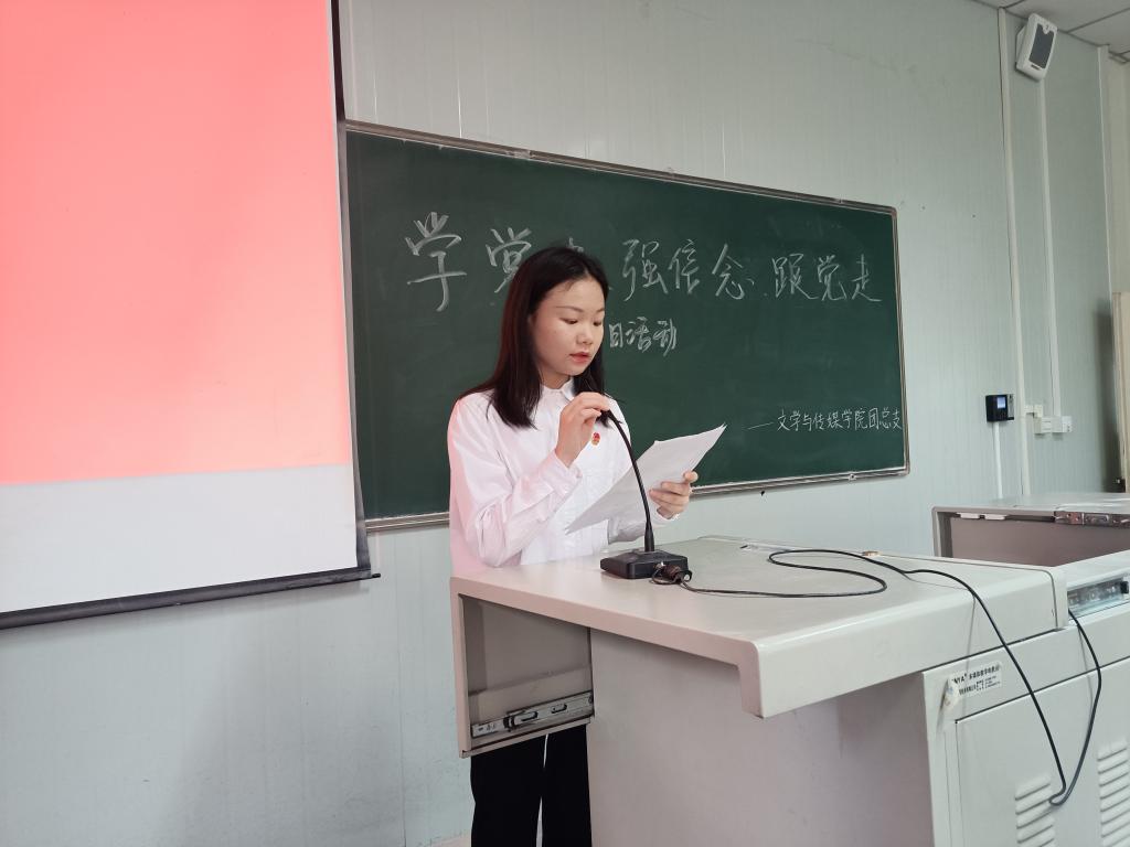 伴着激动的心情,师生返回学校,在江南校区1026室进行本次活动的第二阶段:入团宣誓仪式暨主题团课。第二阶段活动由汉语言文学专业2019级1班路怡鸿同学主持。