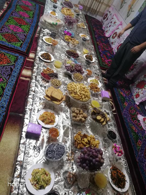 恰逢教师节,校长为了让我们感受到少数民族的热情,便带我们几个去了食堂大师傅哈塞克族家里。在家里,看到了只有在电视上才能看到的美食。各种各样的果酱,坚果,大盘鸡,羊肉,应有尽有。饭后还给我们展示了手风琴,哈塞克族舞蹈。真的大饱眼福。