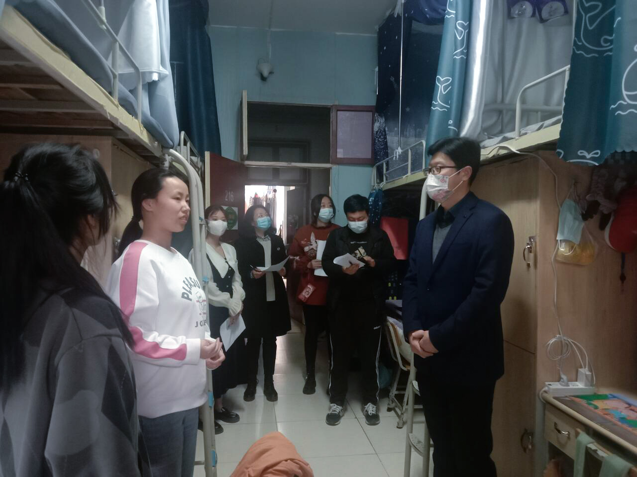评选过程中,各宿舍舍长介绍了宿舍的设计理念和装饰风格,评委老师就寝室整洁程度、装饰风格等方面进行综合评比、打分。
