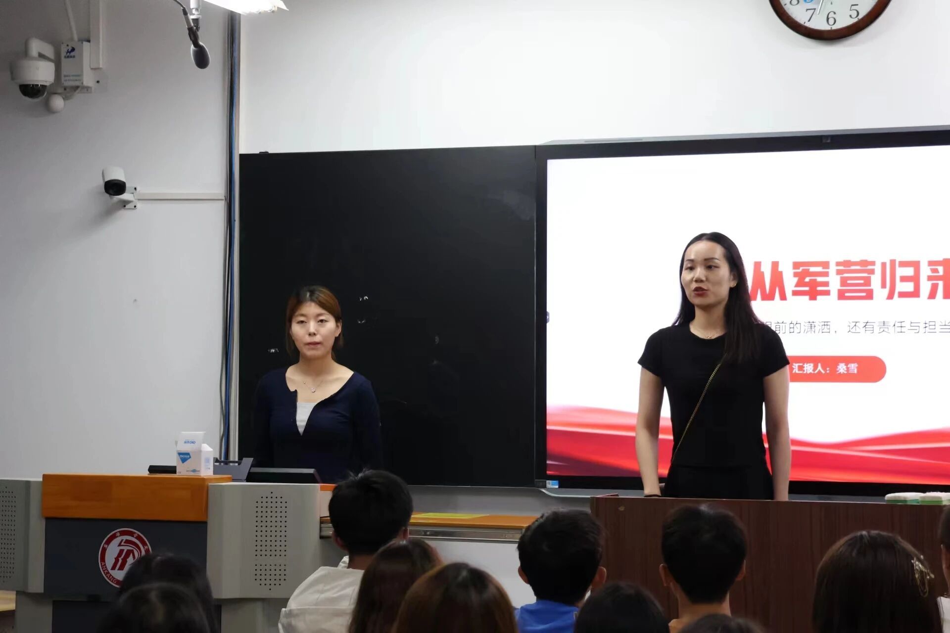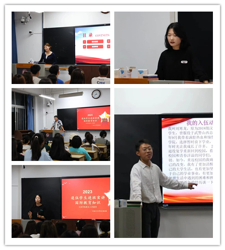 为引导广大青少年赓续红色血脉,树立国防意识,进一步贯彻落实习近平总书记关于加强全民国防教育的重要指示精神,9月12日下午,文传学院在一号教学楼举办国防教育知识宣讲暨新生入学教育讲座,并邀请退伍学生艾佳新、桑雪、严庆、刘寒龙、张振豫进入各班讲授,2023级全体新生参加此次活动。