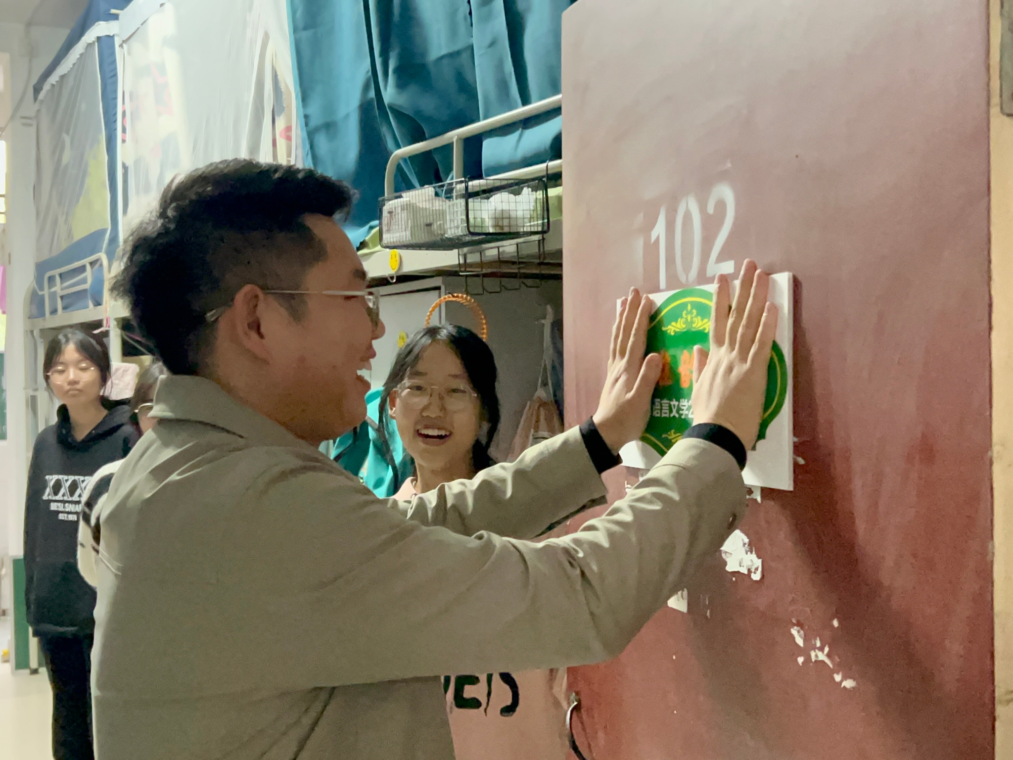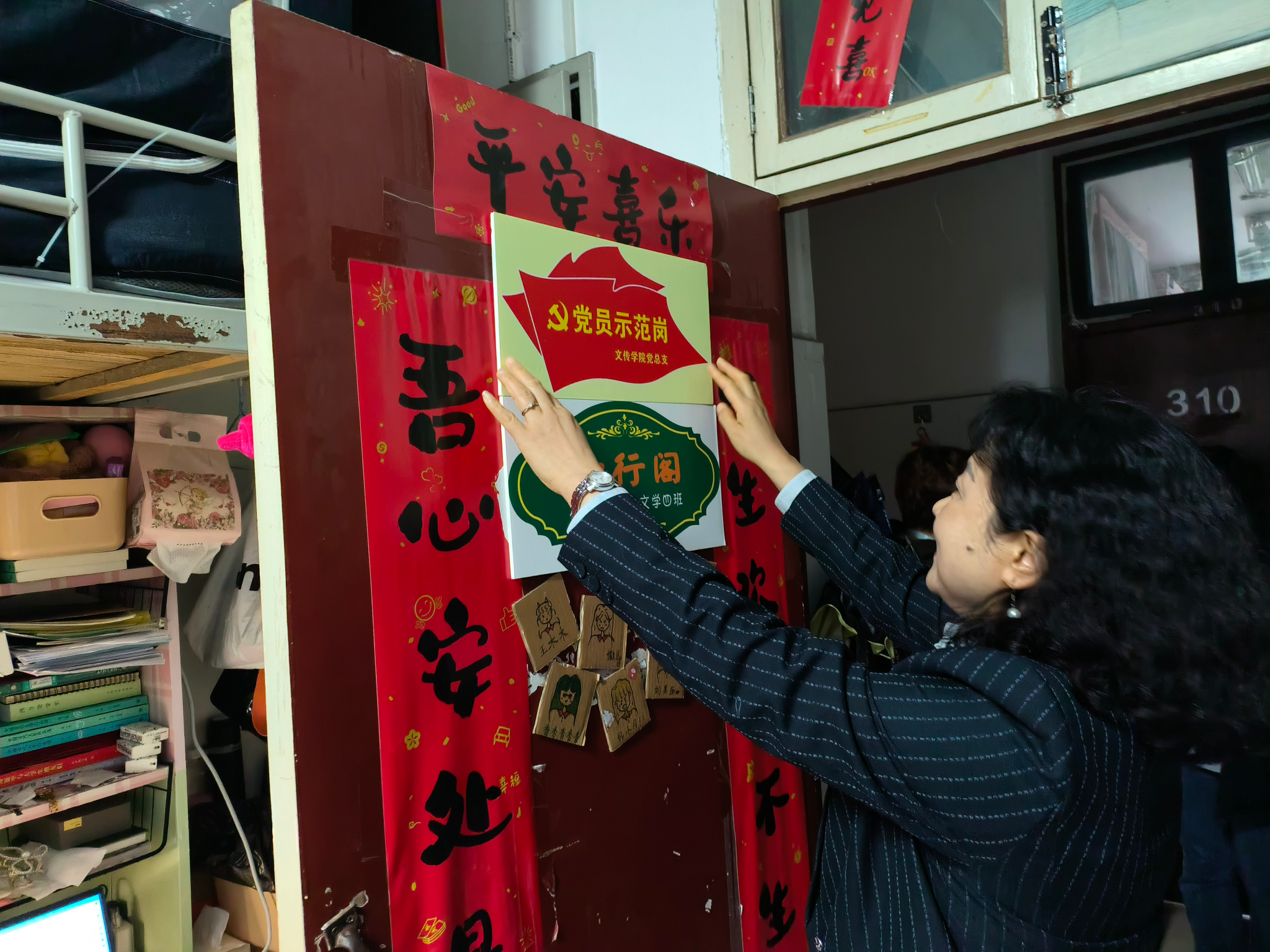 启动仪式后,老师们移步学生宿舍,为党员先锋示范岗和新生宿舍挂牌。