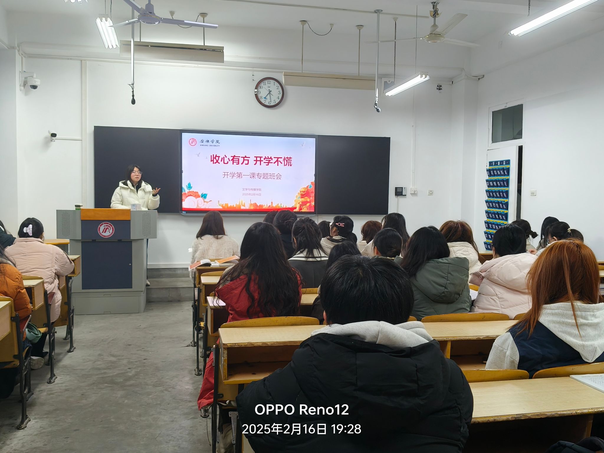 辅导员老师紧扣近期工作重点,多维度推进班会内容。在返校收心教育环节,通过生动的案例分享和积极的互动讨论,引导同学们制定合理的学期计划,以饱满的热情投入新学期的学习中。同时结合专业特点,对同学们提出了具体要求,希望同学们能端正学习态度,养成良好的学习习惯,积极参与课堂讨论,营造浓厚的学习氛围。