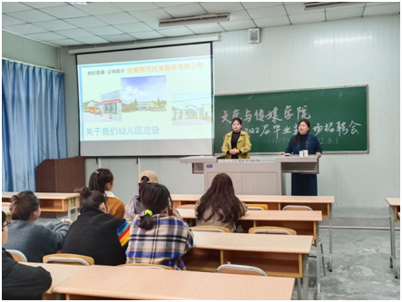 此外,参与线上招聘的包括爱尔福婴幼中心、西安思立辰教育科技有限公司、西安城市科技职业学院等企事业单位,其所招聘职位类别涵盖幼儿教师、初高中教师、短视频拍摄制作等多个领域,为毕业生提供更多样化的就业方向。关于线上招聘公司的企业文化、规章制度、福利待遇、任职要求、工作内容等几个方面的情况由张梦洁同学和汪静同学向在座毕业生做详细介绍。