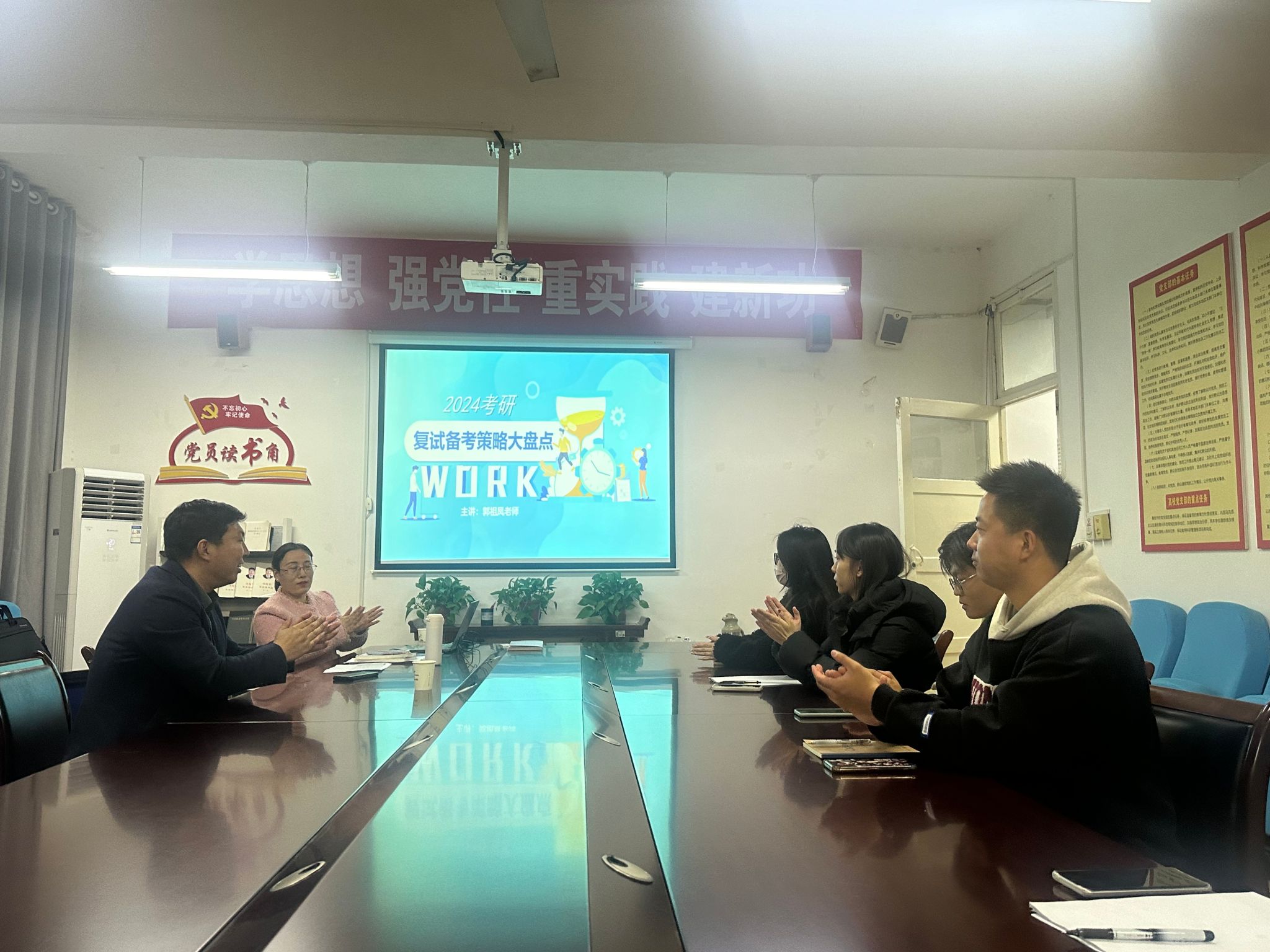 3月9日,文传学院联合学校就业处组织开展2024届考研学生复试指导讲座。本次讲座旨在为即将参加考研复试的学生提供专业的指导和建议,帮助他们更好地准备复试,提高录取率。本次讲座特邀马克思主义学院郭祖凤老师担任主讲嘉宾,文传学院2024届考研学生参会,文传学院学工办主任薛涛主持。