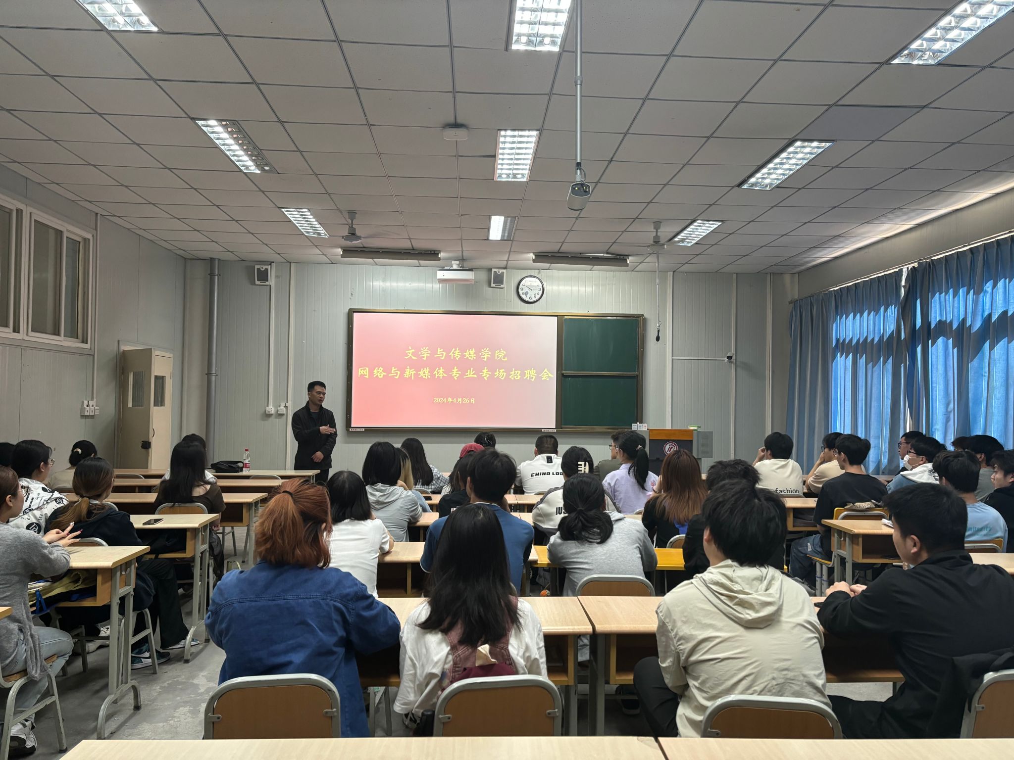 安康多视角影视文化传媒有限公司负责人张总详细的为在场同学介绍了公司概况、企业文化、工作内容、招聘岗位、人文关怀及薪资福利待遇。同学们主动结合自身职业规划与就业目标,就工作内容、薪资待遇、发展前景等同用人单位展开深入交流。