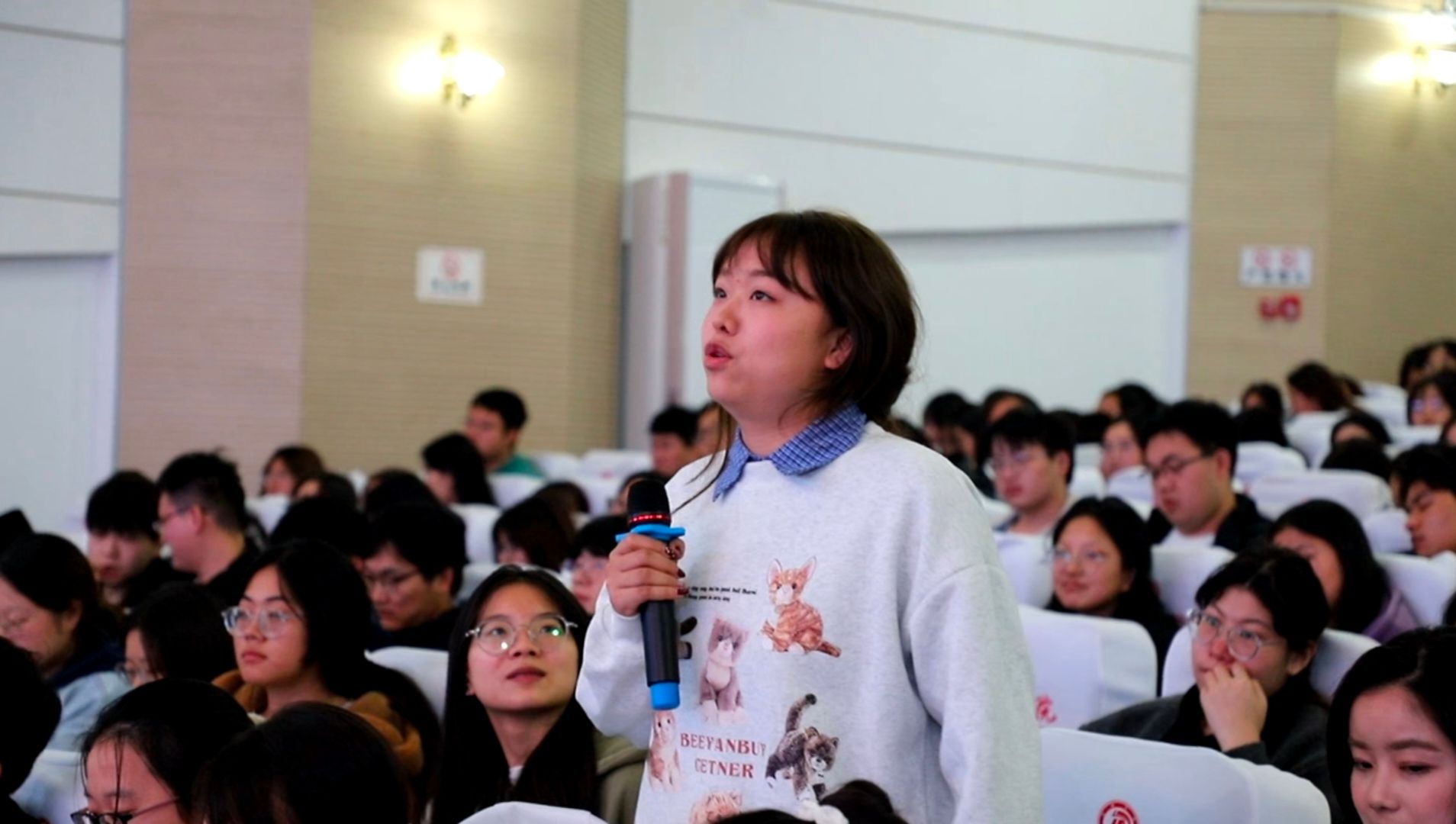 郭媛媛以“致自己”为主题,从丰富的成长经历讲起,介绍了自己的创业过程,鼓励同学们挑战自我,突破“舒适圈”,提升技能。接着,她引导同学们思考人生的意义,区分了“佛系”“躺平”和“摆烂”,帮助同学们树立正确的价值观。她认为,人要通过激发内驱力、提高创新力、保持自律力,化大为小,从当下开始,为人生梦想付诸实践。最后,她勉励大家提起气来,沉下心去,持之以恒,创造美好明天。
