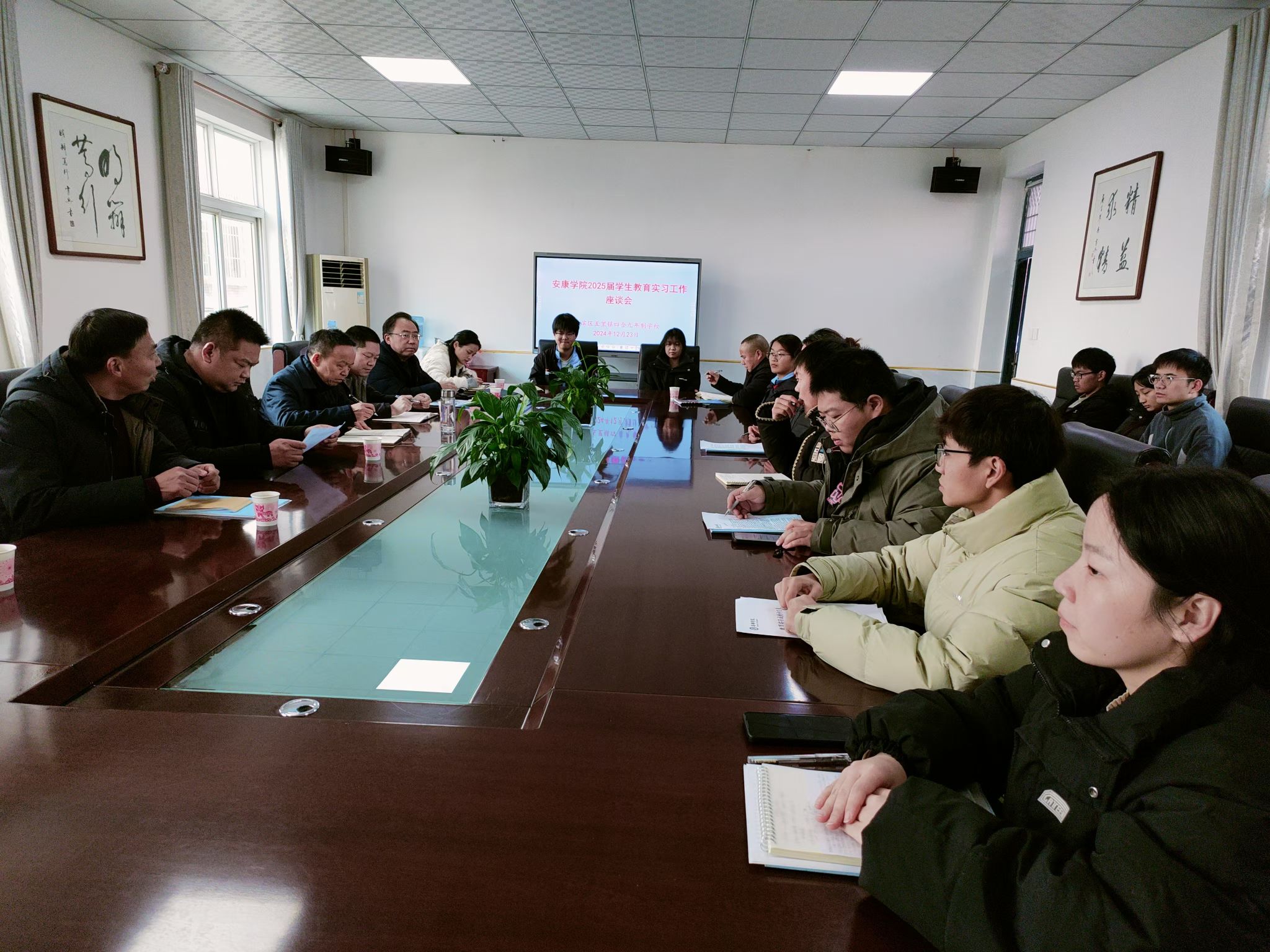 1223日上午,日本少妇AA一级特黄大片院长杨运庚邹棠华一行四人在教务处的组织下前往汉滨区建民初级中学和五里镇四合九年制学校看望在这里参加教育实习的2021实习生