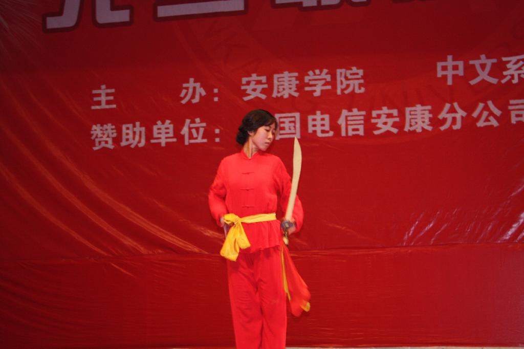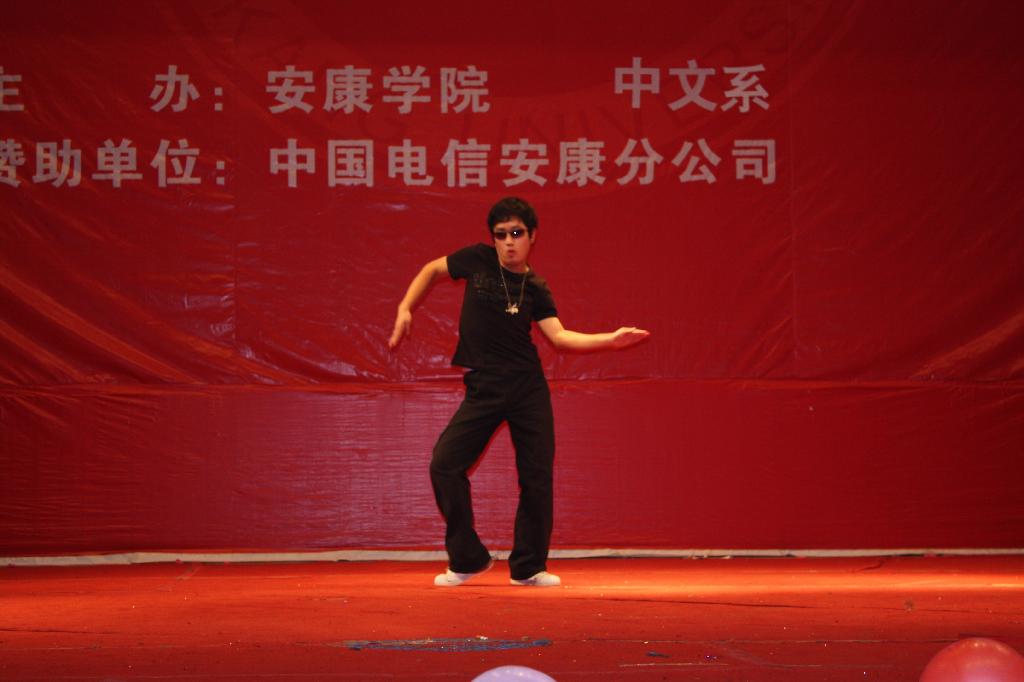 晚会节目异彩纷呈。伴随着喜庆的音乐,开场舞《开门红》引燃了晚会的火爆气氛,拉开了晚会的序幕;小品《才艺大比拼》、《重出江湖》内容个性精彩博得观众阵阵欢笑;武术表演别具一格,演员英姿飒爽令观众叹为观止;舞蹈《SORRY》《CHEER SHOW》、《MIX》以及独舞《恶女》展示了大学生特有的青春活力;双簧《最后一跳》演员配合默契,表演生动。动感的音乐,美妙的歌喉,飞扬的舞姿震撼了观众的感官,展现了我系学生的艺术才华。
