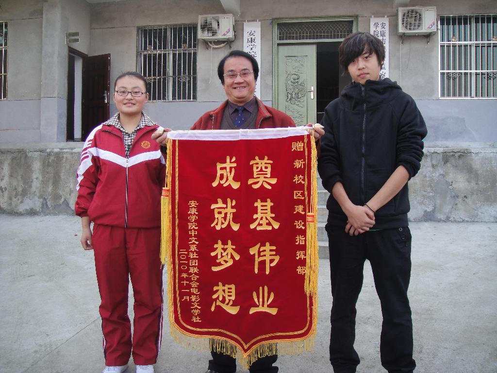 新校区建设指挥部办公室主任杨润波老师代表指挥部所有教职员工对中文系师生表示热烈欢迎,李霞老师向同学们介绍了新校区的规划目标,展示了建成后的宏伟蓝图。怀着对安康学院未来的美好希冀以及对建设者的崇高敬意,电影文学社的同学们纷纷登台以自己的方式向工作者们唱出赞歌。电影文学社社长田颖同学与副社长李翔同学代表全体社员向新校区建设指挥部赠送锦旗,杨润波主任做了最后的感谢致辞,高度评价了同学们演出,充分肯定了此次活动意义。