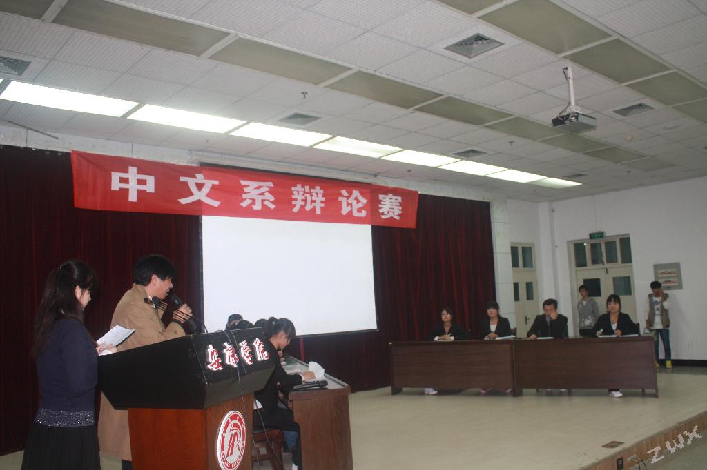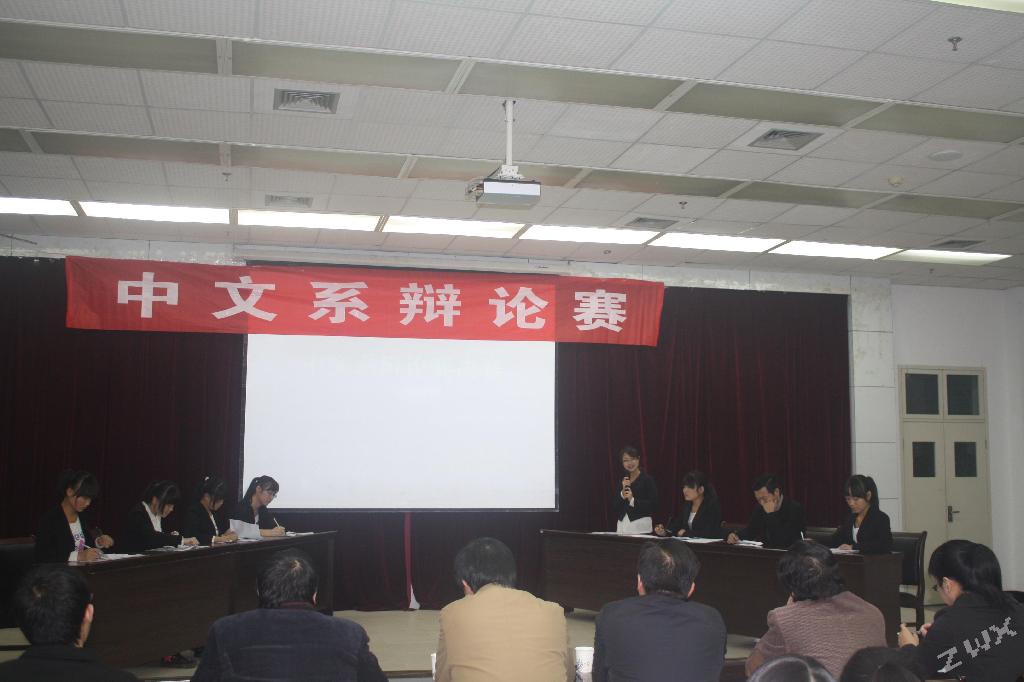 2011年11月3日晚7点,“2011年中文系辩论赛决赛”在我校图书馆六楼报告厅顺利举行。当晚莅临大赛现场的评委老师有李春平老师,雷升录老师,梁卫华老师,杨静老师,朱云老师以及我系全体辅导员老师。