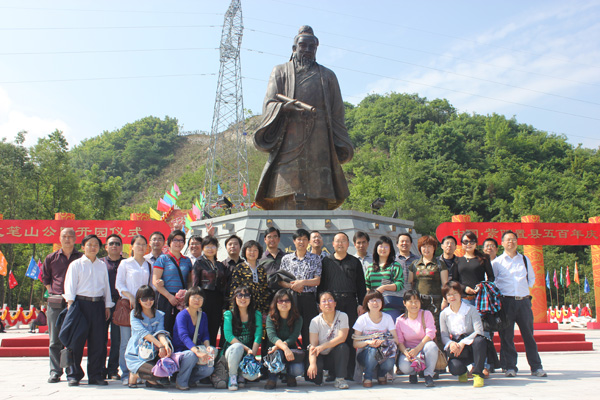 汉水煮茗涤昏寐,茶歌润心致清和。2012年5月5日,中文系党总支组织全系教师前往素有“茶乡、歌乡、桔乡、板石之乡”和“笔石圣地”之称,被文化部和省文化厅命名为“中国民间文化艺术之乡”和“陕西省民歌之乡”的紫阳开展文化调研。中文系教师先是前往紫阳县文笔山文化公园、真人宫考察,观览道教南派始祖紫阳真人铜像及我系教师戴承元、李春平为“中国·紫阳第八届富硒茶文化节”撰写的《祭紫阳真人文》、《紫阳置县五百年赋》。接下来,中文系教师应邀前往盘龙茶庄茗谈并欣赏由茶庄精心安排的茶艺表演及紫阳民歌。最后,中文系教师前往紫阳高山茶园,对春茶的品质特征、采摘及加工工序作了实地参观。