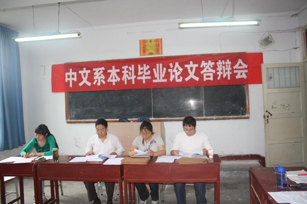 2012年5月12日、5月13日、5月19日,中文系举行了为期三天的2012届本科毕业论文答辩,经过各答辩小组的精心组织和认真细致的工作, 答辩各环节顺利完成。