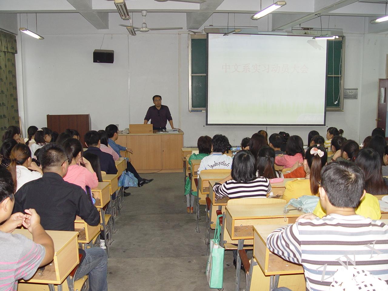 2012年9月26日,中文系召开了2013届学生实习动员会,130余名实习生参加了大会。会议由邹棠华主持,系党总支书记李岩、系副主任梁卫华、辅导员艾全霞参加了会议。