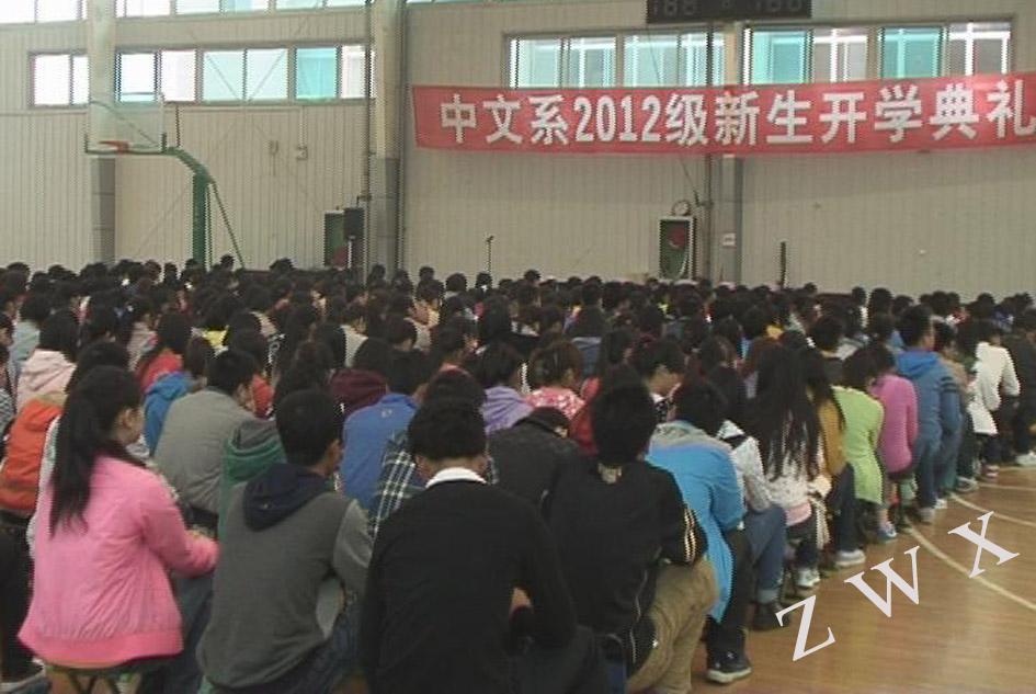 2012年10月11日上午,安康学院中文系在学校体育馆二楼隆重举行2012级新生开学典礼。中文系主任戴承元、党总支书记李岩、副主任梁卫华、杨运庚、著名作家李春平、学工办主任郝礼军、辅导员艾全霞、沈菲及485名新生出席了开学典礼。开学典礼由副主任梁卫华主持。