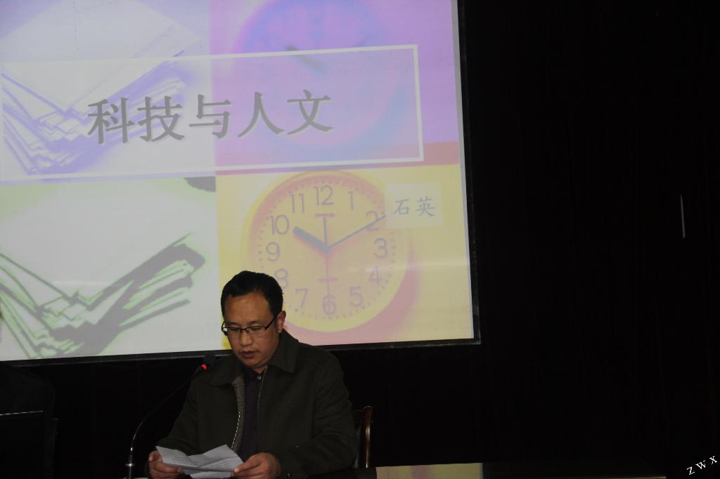 11月4日晚,陕西省社会科学院党组成员、副院长石英研究员来“金州讲堂”作了题为“科技与人文”的学术讲座。副校长向纪明、人事处处长罗文谦、科技处处长刘强、艺术系副主任雷升录、中文系副主任杨运庚与中文系两百余名师生出席了本次报告会。报告会由副校长向纪明教授主持。