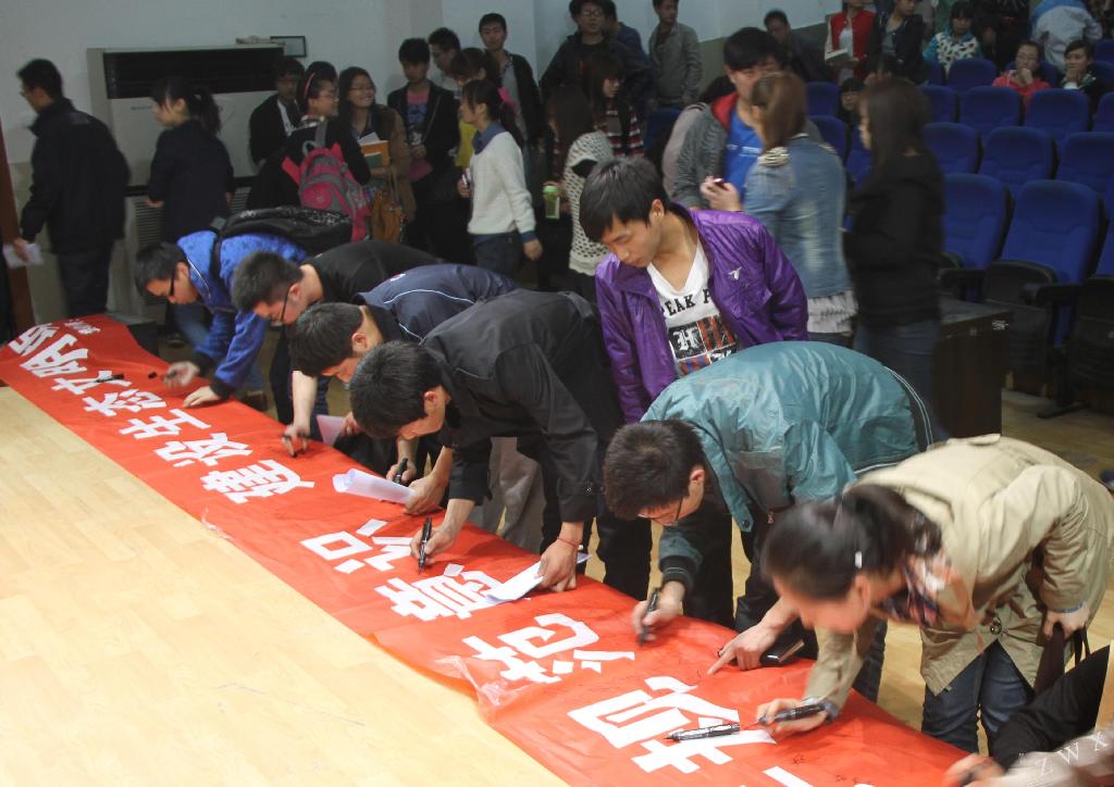 仪式最后,到场师生在“树立语言规范意思 建设生态文明城市”条幅上郑重签名。