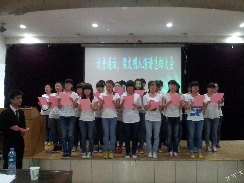 本次“说普通话,做文明人”系列活动围绕“说普通话,做文明人”为主题,通过海报宣传、启动仪式、主题班会、文艺表演、演讲比赛及读书报告会等多种形式充分调动了同学们的学习普通话的积极性,并在丰富多彩的活动中体会普通话的魅力,明确了推广普通话推行规范字的重要性,坚持说普通话,用规范字。