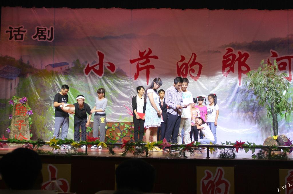 中文系学生改编的话剧《小芹的郎河》于2013年9月24日晚7点在安康学院江南校区大礼堂参加了由中共陕西省委宣传部、陕西省文学艺术界联合会、陕西省教育厅、共青团陕西省委、陕西省戏剧家协会共同主办,陕西省戏剧家协会及全省各高校承办的“陕西省第四届校园戏剧节”演出并获好评。担任本次演出的评委分别为省剧协党组成员、副秘书长罗顺庆,省剧协党组成员、副秘书长李生茂,省文联副主席、省剧协副主席、国家一级演员刘远,陕西师范大学教授雒社扬,安康学院教授戴承元。安康学院党委副书记胡鸿晓、学校党委宣传部鲁延安、中文系党总支书记李岩、校团委副书记李光梓、中文系副主任杨运庚等嘉宾观看了本次演出。演出结束后,出席本次演出的评委和嘉宾与剧组演出人员合影留念,评委组专家对剧组师生对话剧的热情、渴望、演出情况给予了充分的肯定,正是有这些人的坚守,才使陕西的话剧事业星火相传。
