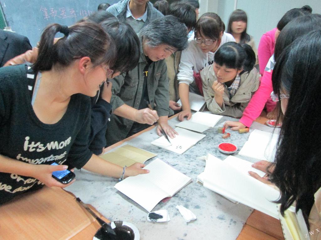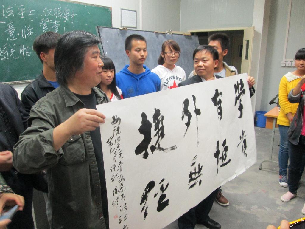 讲座结束后,张枫先生挥毫留墨,寄语书法社同学,学书如修行,艺海无涯,道由心悟,要将书法与人生结合起来,在书法实践中砥砺精神,美化人生。整场讲座生动形象、深入浅出,对书法社同学正确认识中国书法艺术的文化精神和美学特征,顺利开展日常交流学习活动具有积极意义。