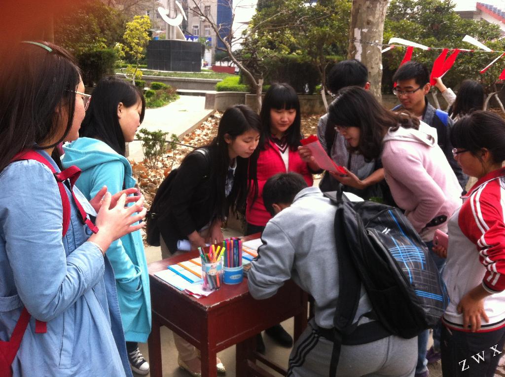 2014年3月21日上午,我系语言文字社在校园林荫道举办首届“猜字谜”活动。