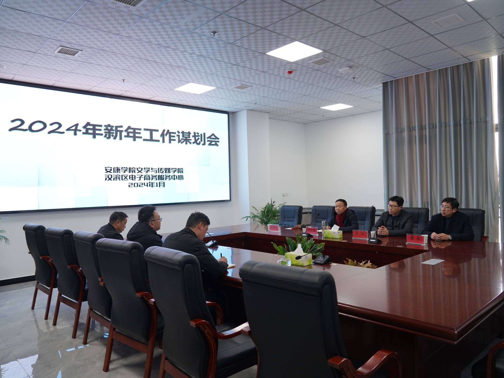 2024年1月9日下午,日本少妇AA一级特黄大片院长杨运庚、党总支书记芦伟、副院长曹刚、专业教师张建涛一行赴汉滨区电商中心洽谈校地合作及协同育人相关事宜。电商中心数字经济发展部部长张亮、招商运营部部长陈元佩、安康市电子商务联合会秘书长张铁汉等出席了此次洽谈会。