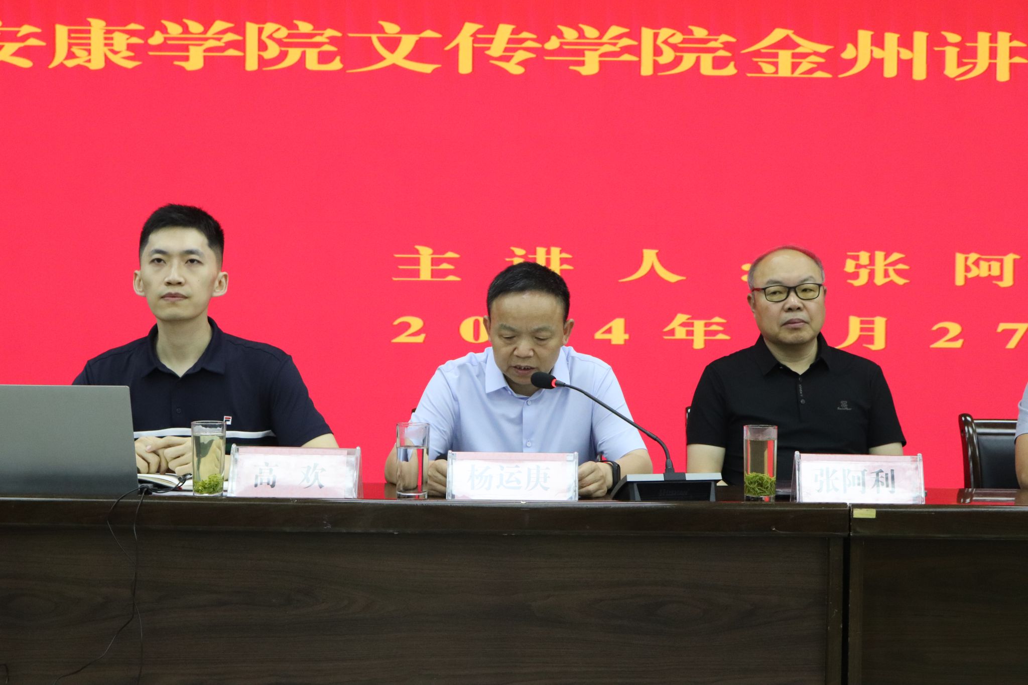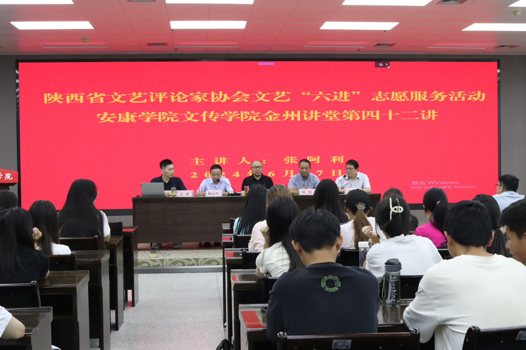 6月27日上午,陕西省文艺评论家协会文艺“六进”志愿服务活动暨我校文传学院“金州讲堂”第四十二讲在江南校区图书馆六楼报告厅举行,陕西省文艺评论家协会主席、西北大学电影学院院长张阿利应邀作了“西部电影四十年”的学术报告。省文艺评论家协会秘书长杨钊、文传学院院长杨运庚出席活动并致辞,活动由文传学院副院长、安康市文艺评论家协会主席朱云主持。