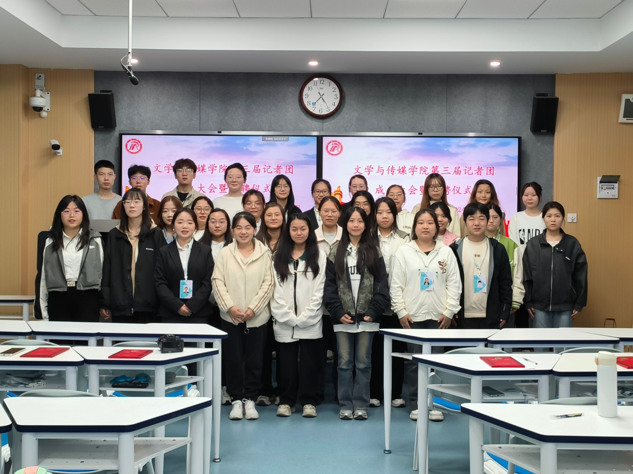 新一届主编肖瑶、副主编王一纯做就职演讲。她们表示,记者团将在新媒体人才专业能力提升上加大培训力度,注重团队成员综合素质的发展,继续围绕学院中心工作开展活动,客观、公正、及时地宣传报道学院要闻,共同为学院新闻宣传贡献力量。