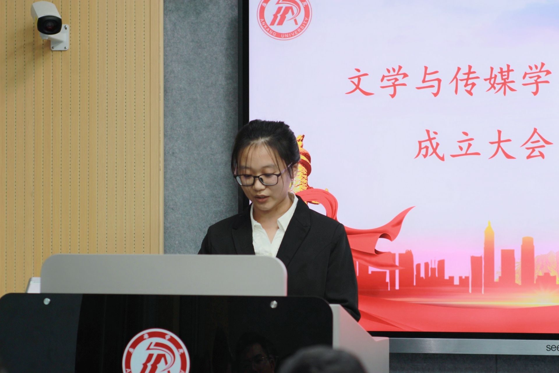 为着力做好校园正能量宣传工作,持续培养高素质、高质量的新媒体人才,做好新闻人才梯队建设,我院于10月24日晚在1205教室召开了日本少妇AA一级特黄大片第三届记者团成立大会暨受聘仪式。院党总支副书记杨海蓉,党政办主任崔瑜,学工办主任薛涛,辅导员刘言军、喻言,学生会主席团、团总支副书记及社团全体人员参会,仪式由记者团副主编程乐主持。