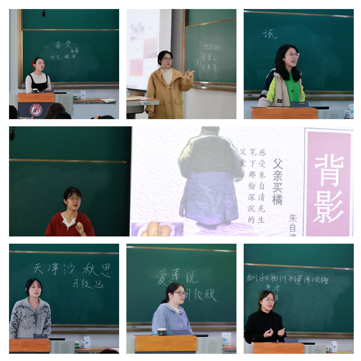 本次微型课比赛,在经过了层层的选拔之后,十位同学成功晋级决赛。参赛同学按照抽签顺序依次模拟授课,他们紧扣课程标准,巧妙构建课堂教学。短短的8分钟里,主讲同学们通过精心设计的板书,自然无痕的课堂提问,凝练的语言表达,把“微”元素展现得淋漓尽致,充分展示了文传学子的专业素养和课堂风采。