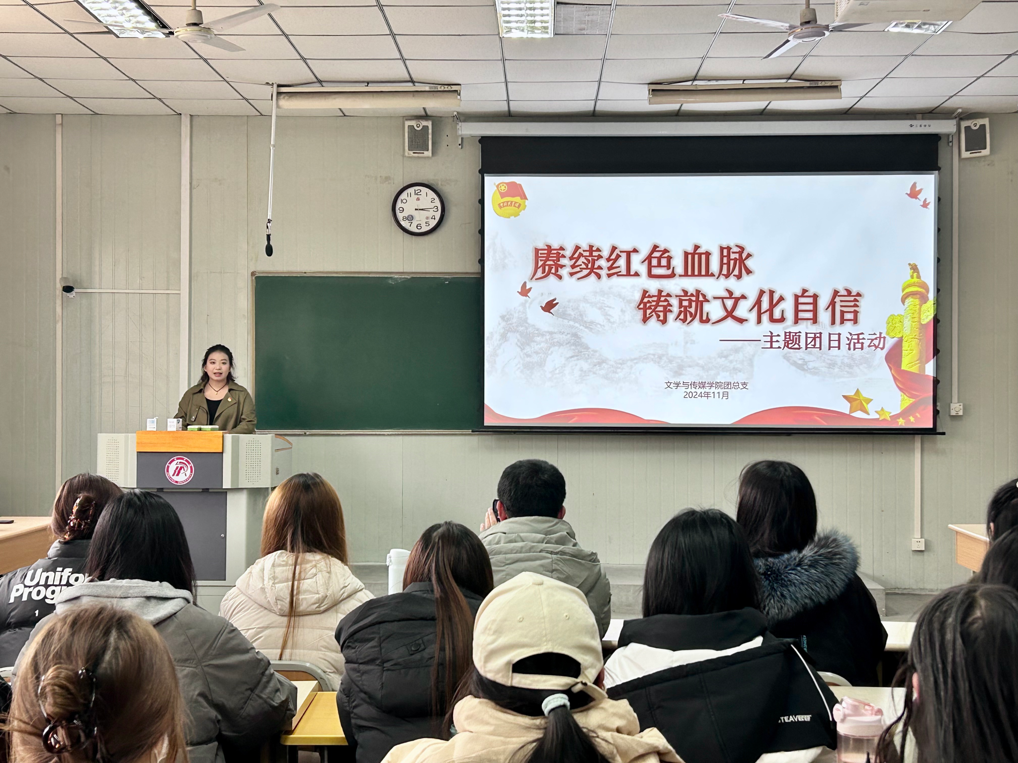 为引导团员青年传承红色基因,增强文化自信,展现青年担当,12月5日下午,日本少妇AA一级特黄大片在1024教室开展了“赓续红色血脉,铸就文化自信”主题团日活动。我院团总支书记彭潇,辅导员许明,汉语言文学2023级1班、2班同学参会,活动由李祉怡主持。