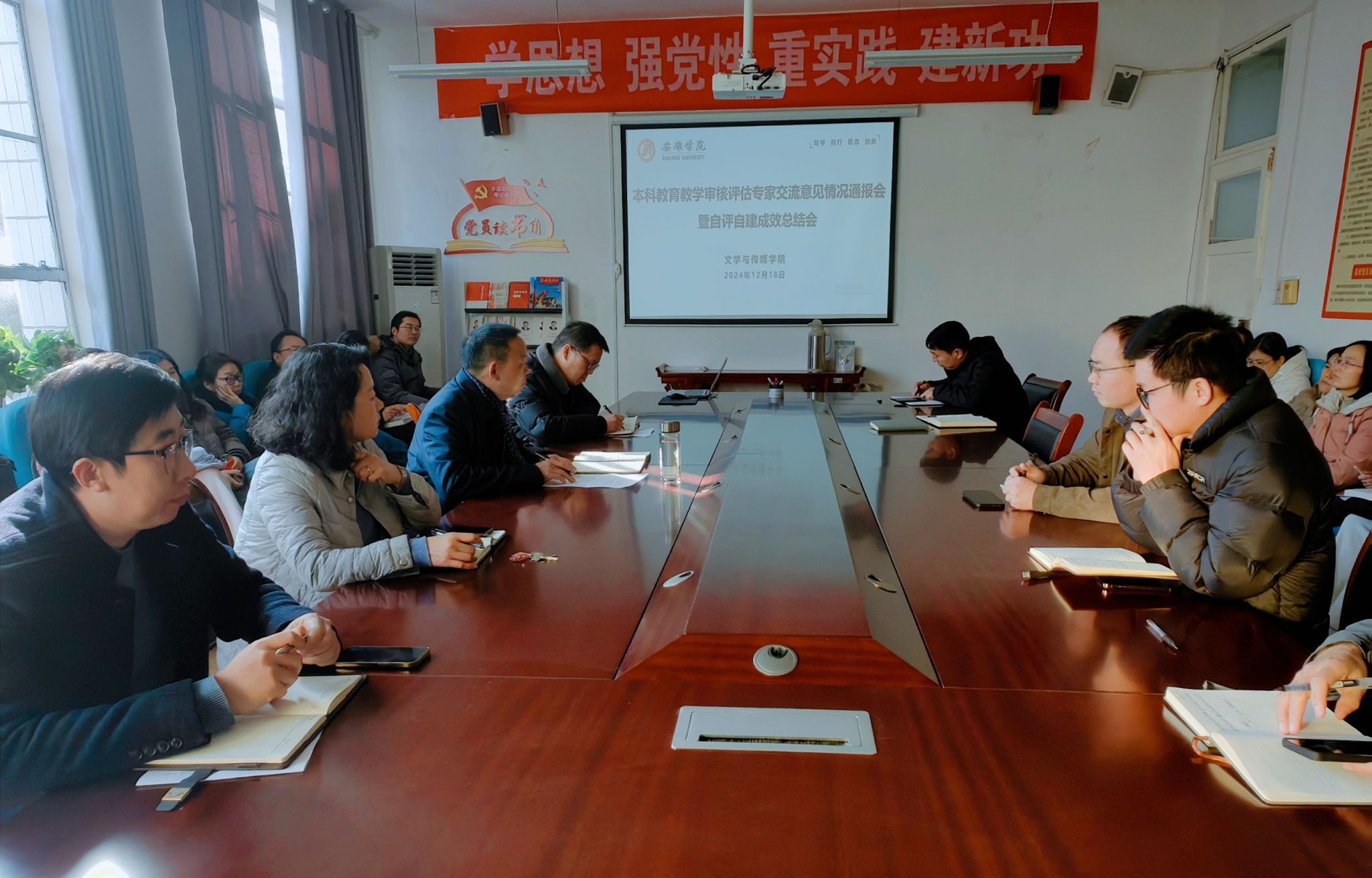12月18日下午,文传学院在2307会议室召开本科教育教学审核评估专家交流意见情况通报会暨自评自建成效总结会,会议由文传学院院长杨运庚主持,文传学院全体教师参加会议。