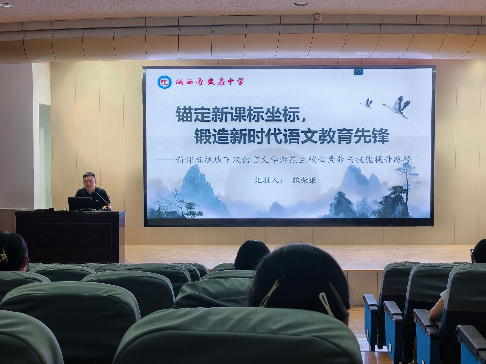为助力汉语言文学师范生适应新课标要求,提升教育教学能力,5月7日日本少妇AA一级特黄大片在江南校区一号楼报告厅举办了题为"新课标视域下汉语言文学师范生核心素养与技能提升路径"的专题讲座。本次活动邀请安康中学魏荣康老师主讲,汉语言文学系主任谭诗民博士主持,2022级全体师范生现场听取了报告。