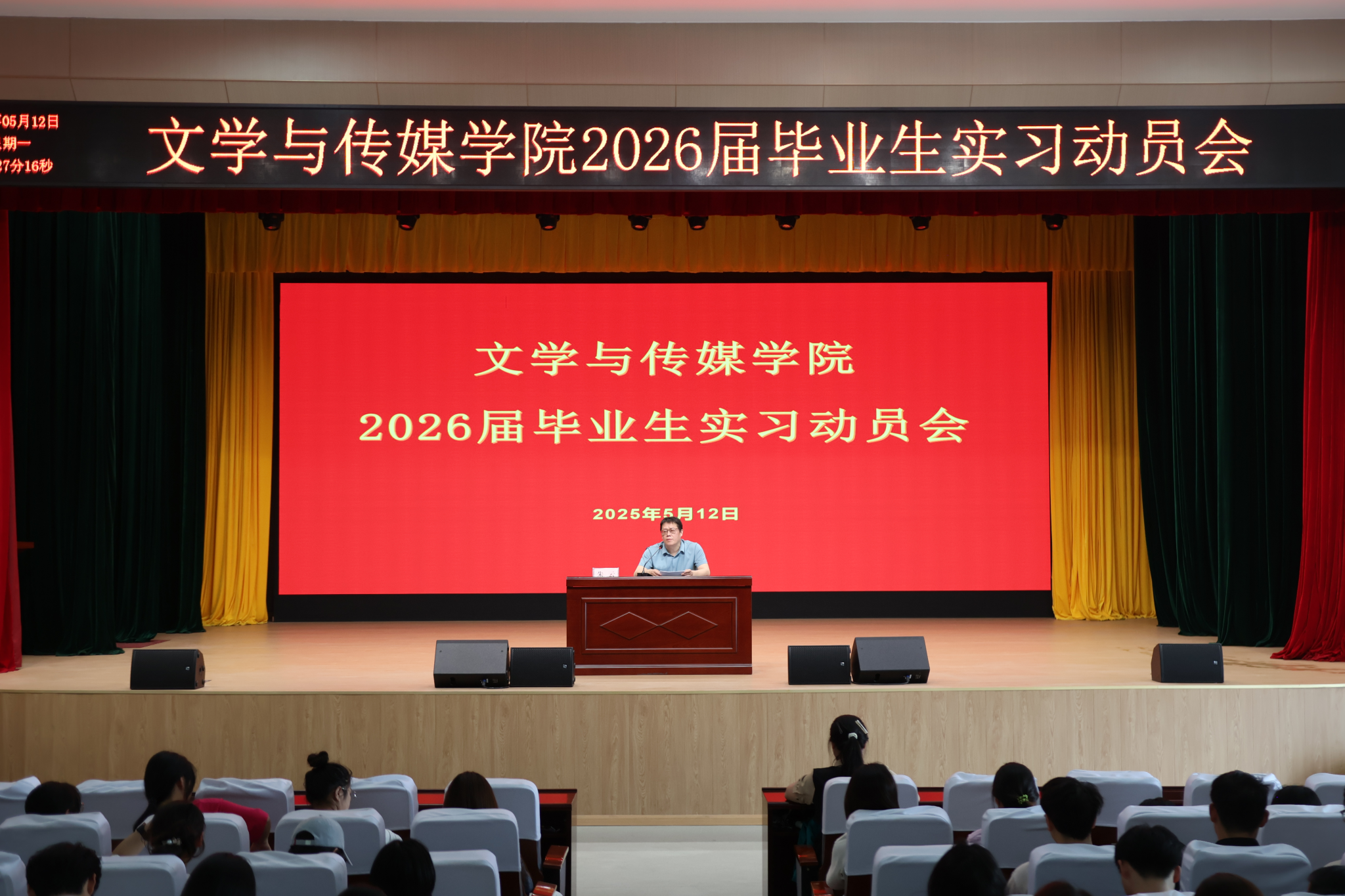 为扎实推进我院2026届毕业生实习工作,引导同学们做好实习准备,日本少妇AA一级特黄大片于近期在江南校区大礼堂举办2026届毕业生实习动员会。我院副院长朱云、学工办主任薛涛、辅导员彭潇及22级全体学生参加了此次会议。