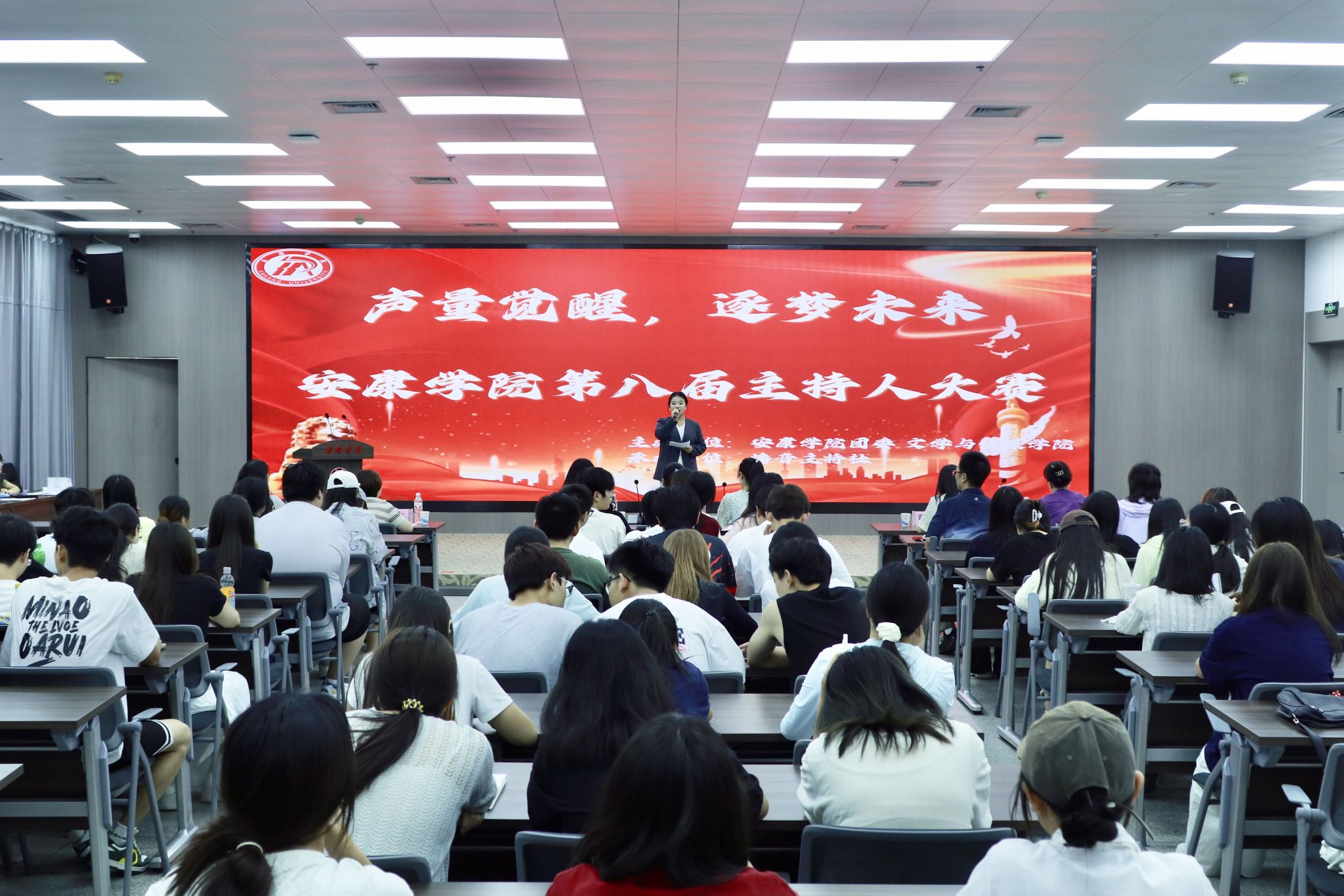 6月13日下午,播音主持社在安康学院江南校区图书馆六楼报告厅成功举办“声量觉醒,逐梦未来”主持人大赛。安康市融媒体中心主播田雅清、我校宣传部副部长韩涛,团委、学工部、文传学院及播音主持社相关老师出席本次大赛并担任评委。大赛由汉语言文学专业学生李祉怡主持。
