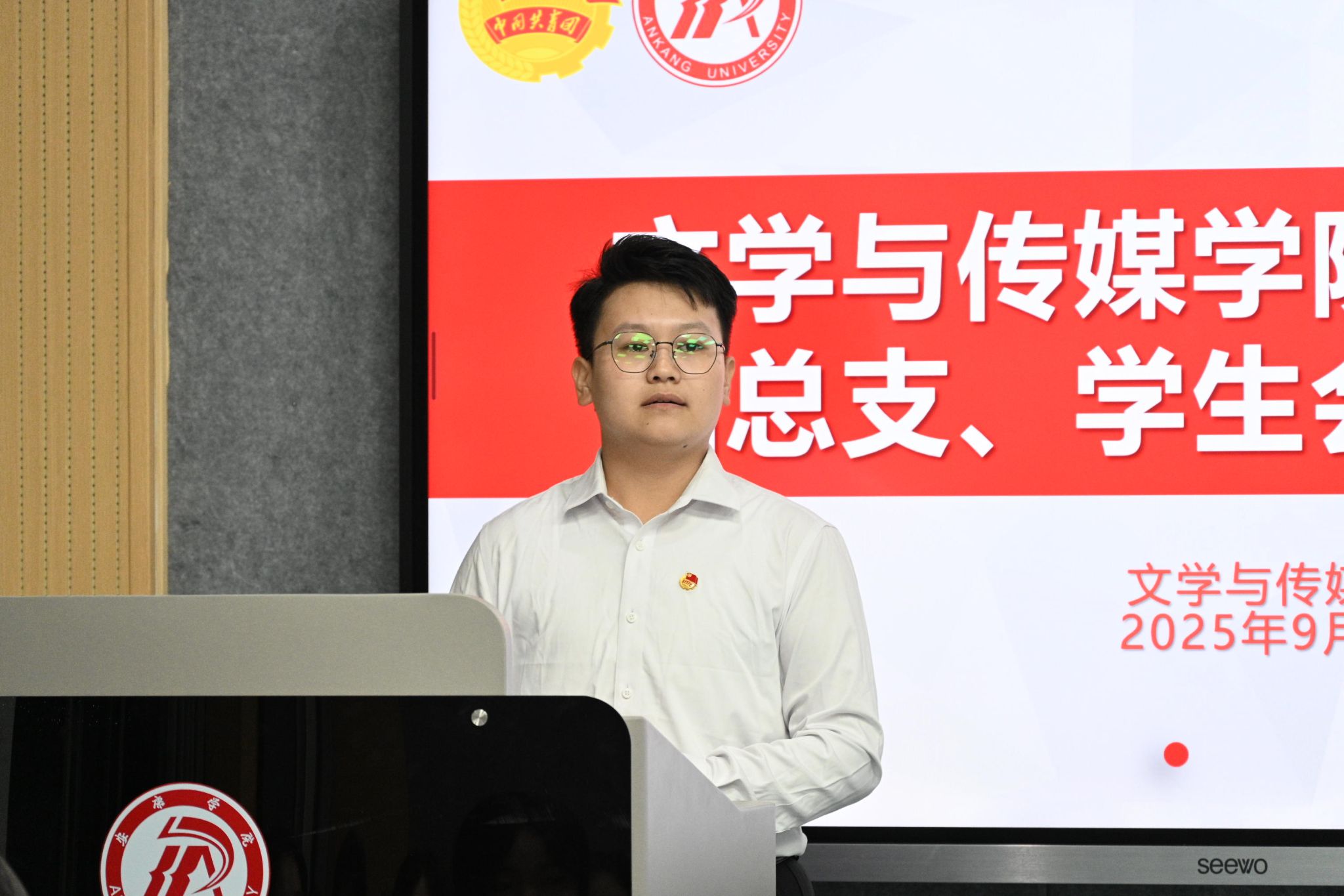 为进一步规范我院团总支、学生会组织建设,充分发挥学生干部模范引领作用,选拔优秀学生骨干,9月12日晚7点,文传学院在1305教室举行了第二十届团总支、学生会换届竞聘大会。学工办主任薛涛、团总支书记彭潇、辅导员刘言军及第十九届团总支、学生会主要学生干部出席本次会议。活动由汉语言文学2024级1班李炫烨主持。