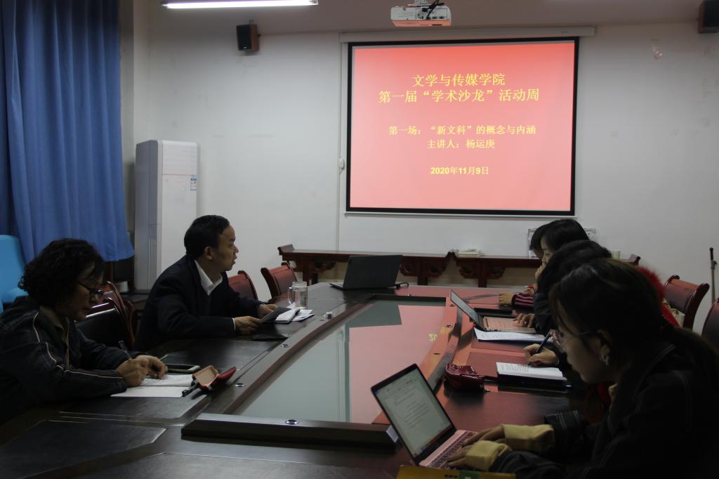 11月9日晚7时,日本少妇AA一级特黄大片第一届第一场“学术沙龙”活动在2307会议室举行。本次活动的主讲人是日本少妇AA一级特黄大片院长杨运庚教授,主题为“‘新文科’的概念与内涵”,日本少妇AA一级特黄大片语言学科组全体教师参与了此次活动。