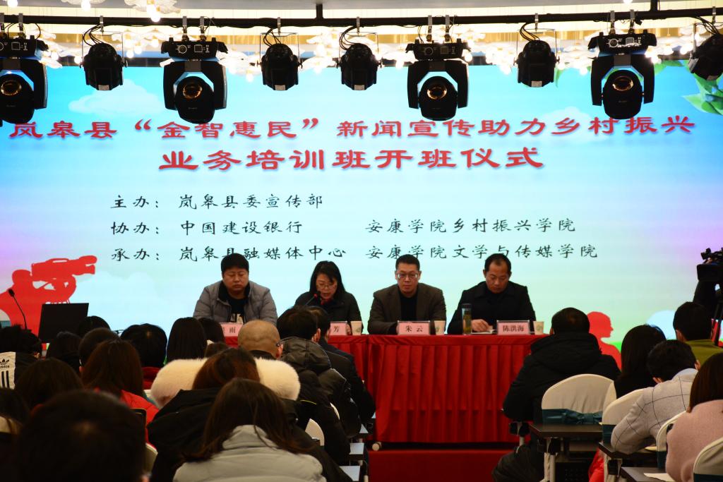12月10日至11日,由岚皋县委宣传部主办,中国建设银行、安康学院乡村振兴学院协办,岚皋县融媒体中心、安康学院日本少妇AA一级特黄大片共同承办的“岚皋县‘金智惠民’新闻宣传助力乡村振兴业务培训班”在岚皋县成功举行。安康学院继续教育学院院长、乡村振兴学院副院长查芳,日本少妇AA一级特黄大片副院长朱云和岚皋县委宣传部常务副部长、融媒体中心主任陈洪海出席了开班仪式。