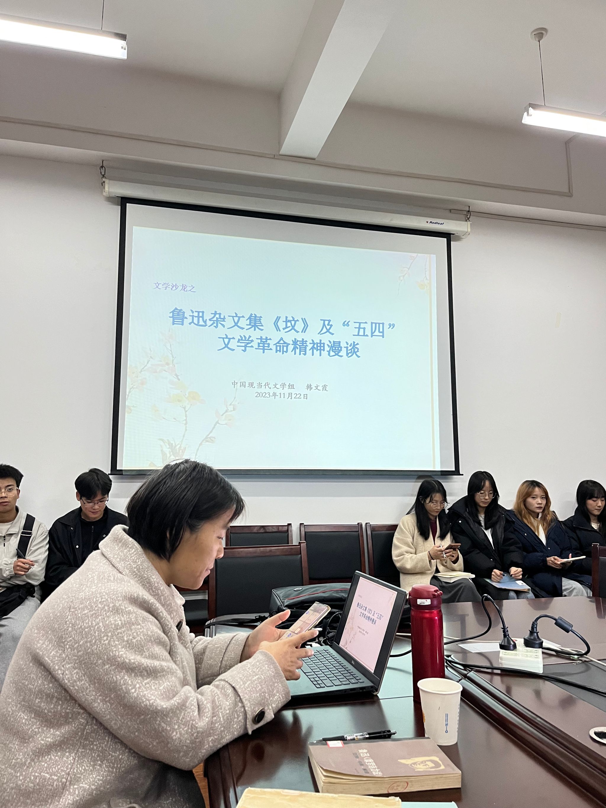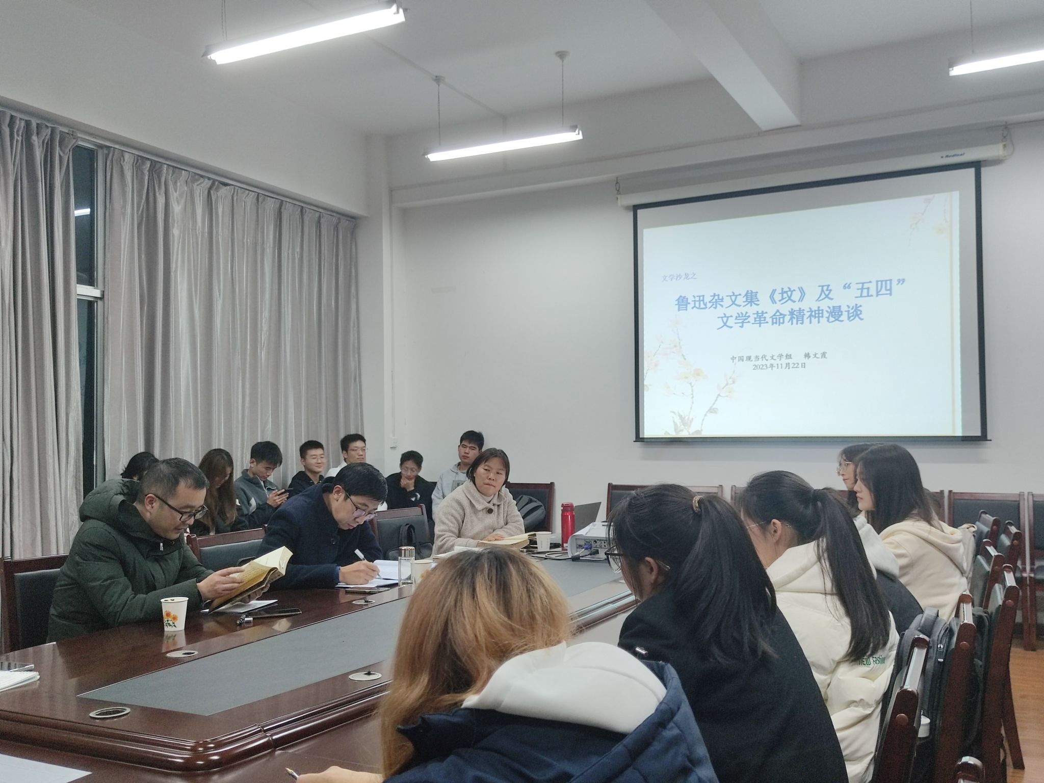 11月22日晚7点10分,日本少妇AA一级特黄大片中国现当代文学学科组在陕南民间文化研究中心会议室成功举办了第八届“学术沙龙”活动周第二场沙龙。本场学术沙龙由韩文霞主讲,主题为“鲁迅杂文集《坟》及‘五四’文学革命精神漫谈”。文传学院副院长曹刚、专任教师胡少山和二十余名学生参与了沙龙活动,沙龙由曹刚主持。