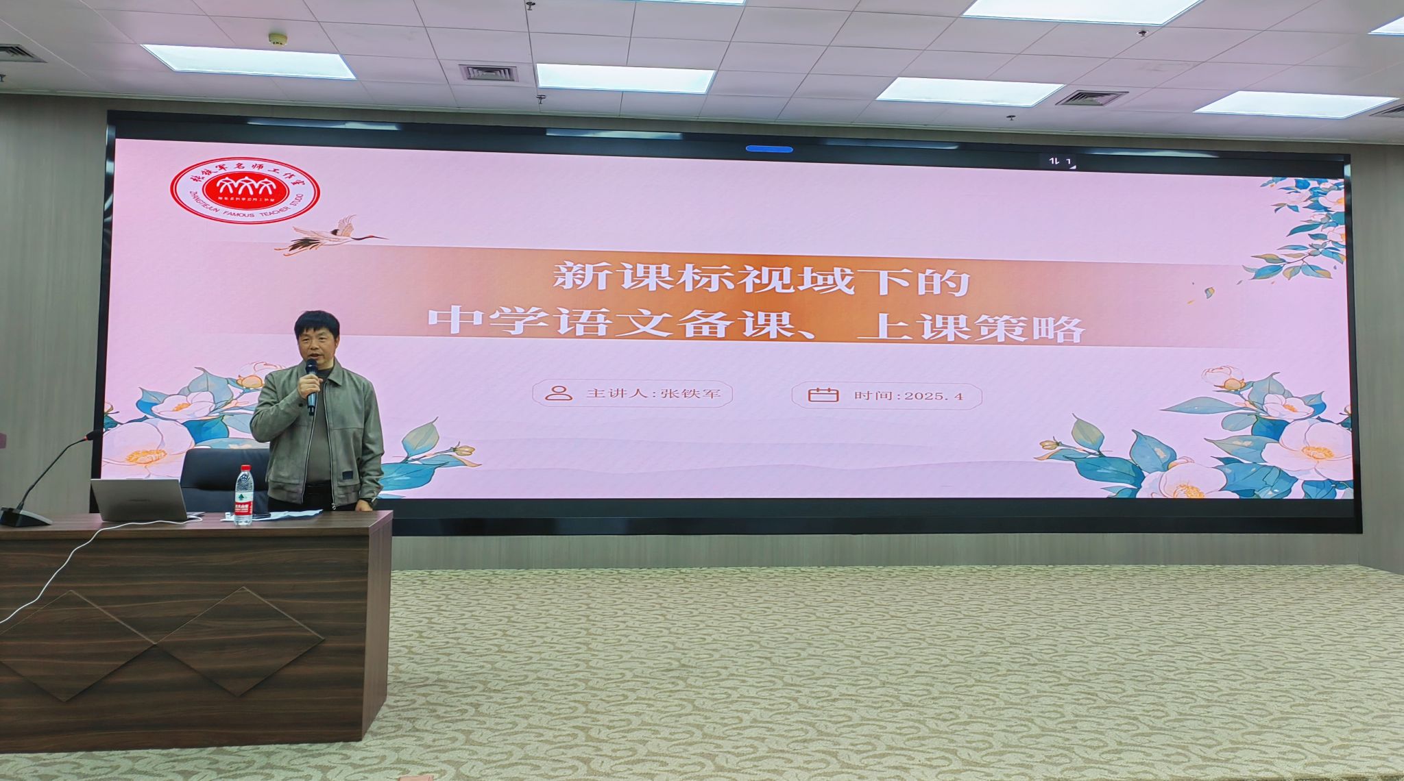 为深化师范生教学实践能力培养,助力卓越师资成长,4月2日晚,日本少妇AA一级特黄大片在图书馆六楼报告厅举办 "新课标视域下的中学语文备课与教学策略" 专题讲座。本次活动特邀陕西省教学能手、安康中学正高级教师张铁军主讲,班主任唐明珍和第四届 "中学语文卓越师资班" 全体学员及部分毕业生共同参与。