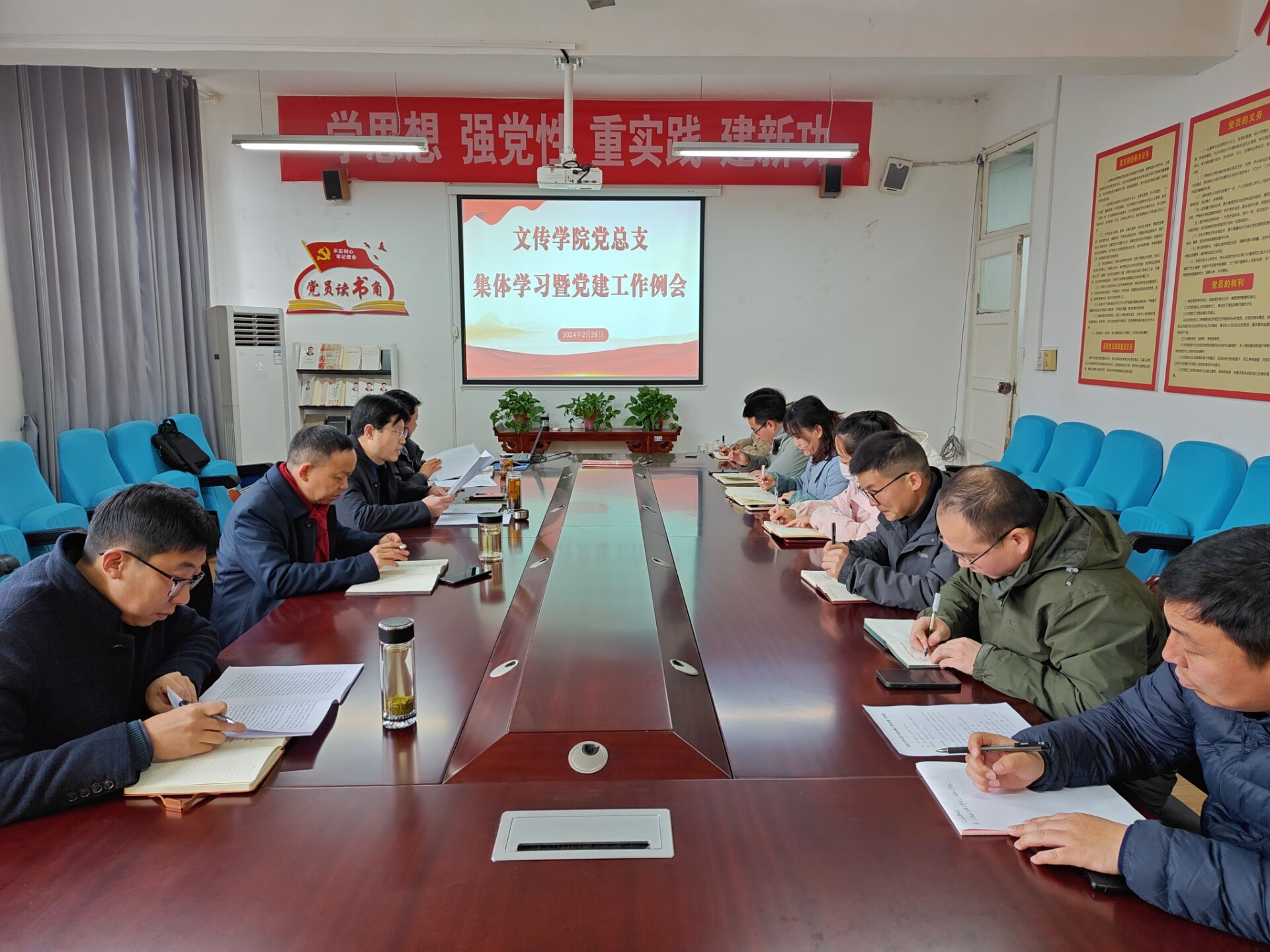 2月28日下午,文传学院理论学习中心组在2307召开党总支集体学习暨党建工作例会,学院党总支委员、各党支部书记、系主任、团总支书记参加学习研讨,会议由学院党总支书记芦伟主持。